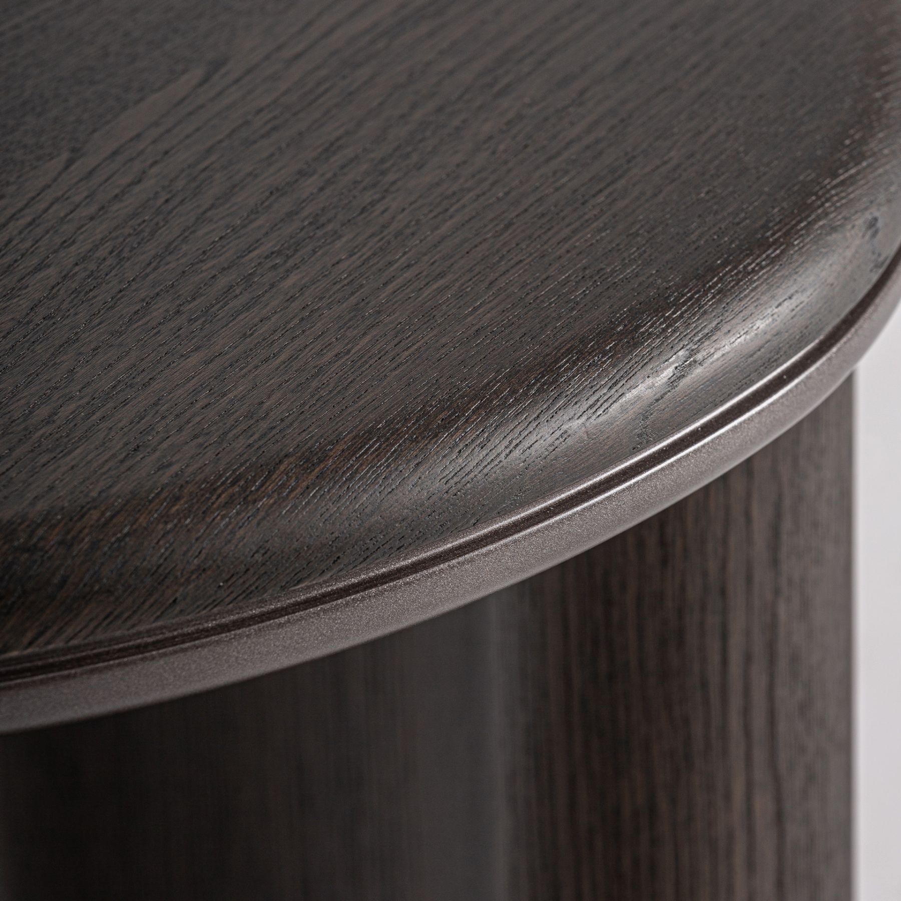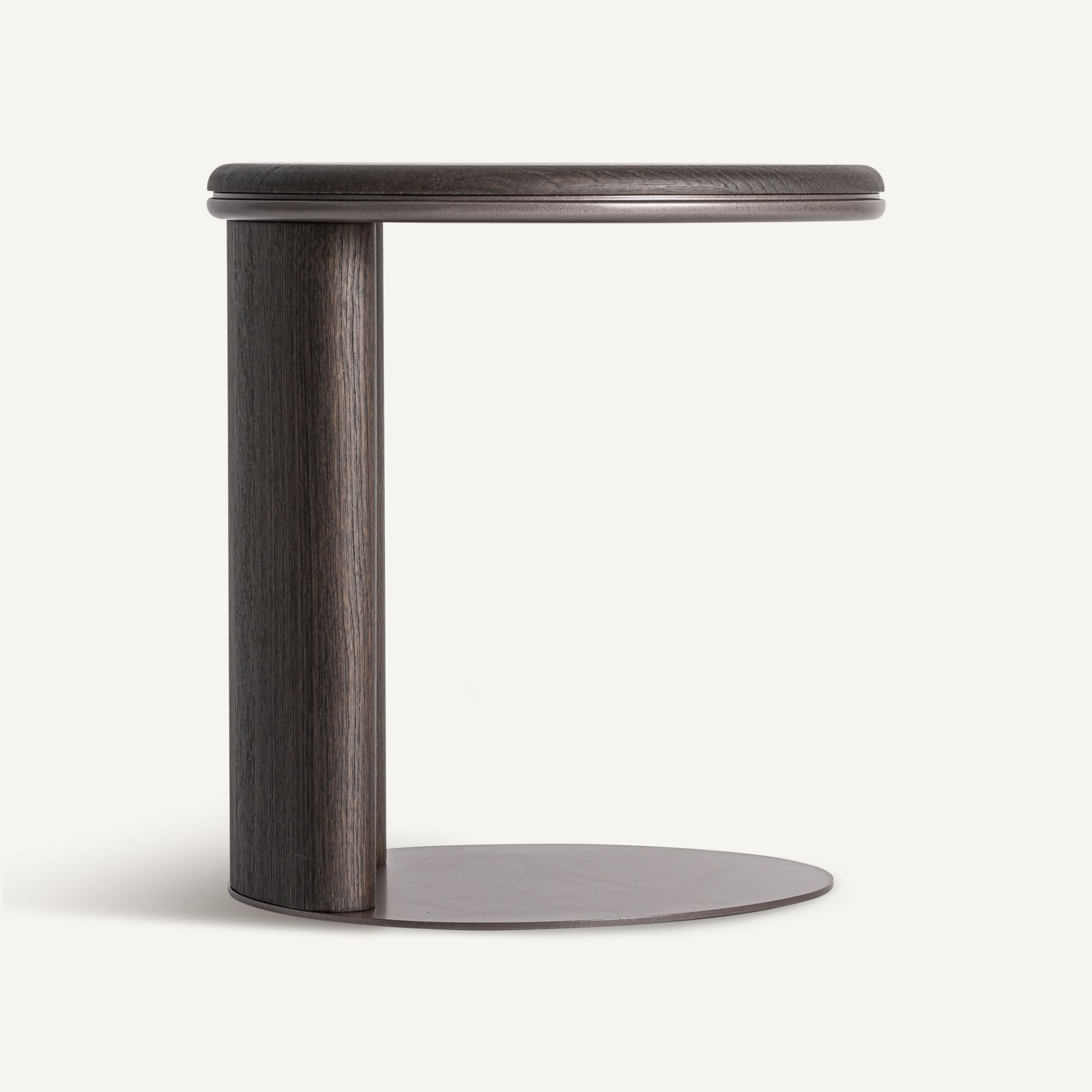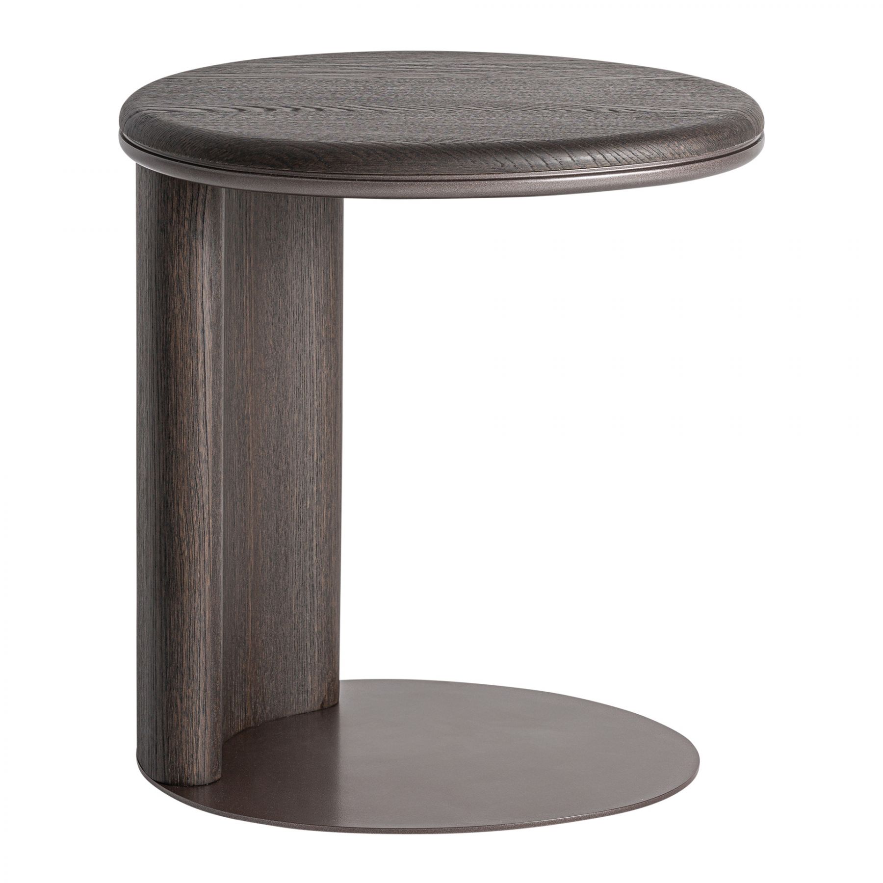 Приставной столик из светло-коричневого МДФ в сочетании с коричневой фанерой и железом. Ширина: 47 см, Глубина: 43 см, Высота: 51 см