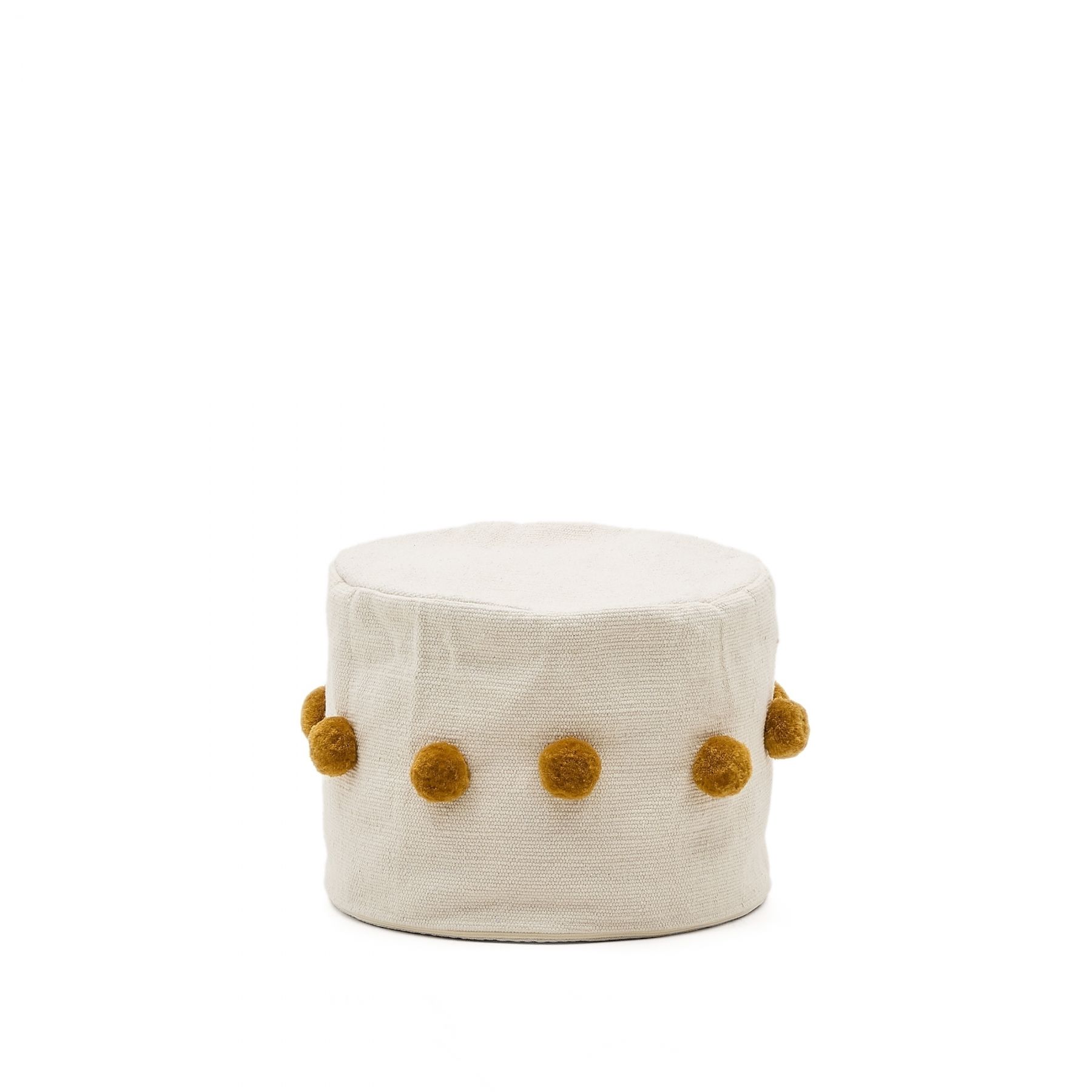 Пуф Manua бежевый с кисточками горчичного цвета, 40 см