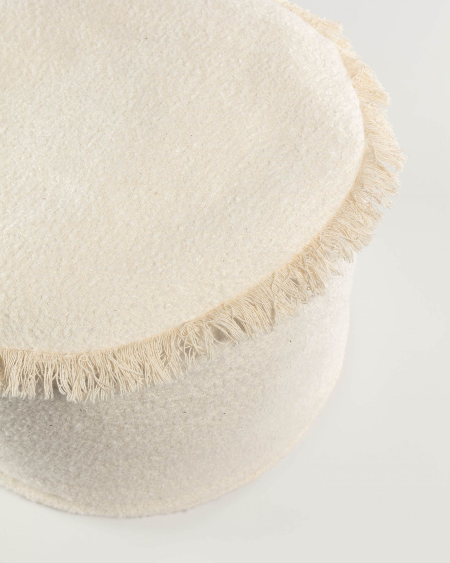 Пуф Verenice от фабрики La Forma (ex Julia Grup) – для естественного и свежего вида круглый год. Пуф Verenice сразу станет востребованным в вашем доме. Его форма позволит выбирать различный способ использования Подставка для ног, дополнительное место, атрибут для игр ребенка – все эти роли по силам пуфу Verenice. Тем более, его полностью натуральный состав безопасен для ребенка, так как не вызывает аллергию, не выделяет токсины. Оцените естественную мягкость пуфа Verenice при любом использовании. Пуф имеет цилиндрическую форму, без каркаса. Он полностью сделан из натурального хлопка, благодаря чему безопасен для детского использования. Кроме этого, пуф отлично подходит для интерьера детской комнаты за счет нежного светло-бежевого цвета и декора в виде бахромы. Флисовая фактура обивки обеспечивает мягкость и приятные тактильные ощущения во время использования. При загрязнении ткань следует чистить деликатным способом, не используя отбеливатели и абразивы. Размер: высота – 27 см, ширина – 40 см, глубина – 40 см. Вес изделия – 2 кг.