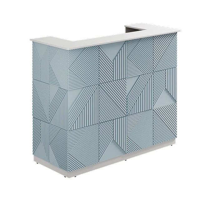 Ресепшн с фрезировкой фокус в МДФ пленке белый/скай