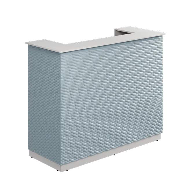 Ресепшн с фрезировкой рябь в МДФ пленке белый/скай