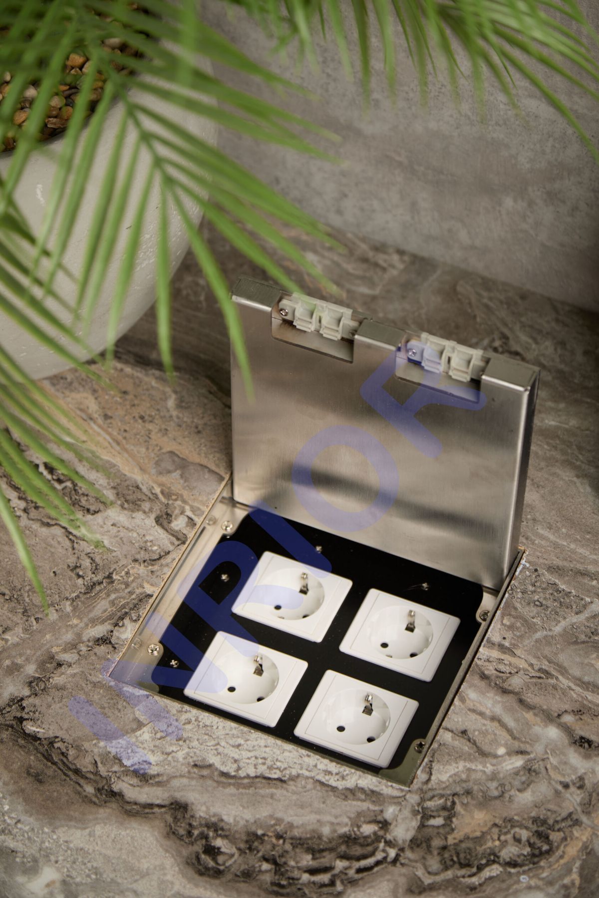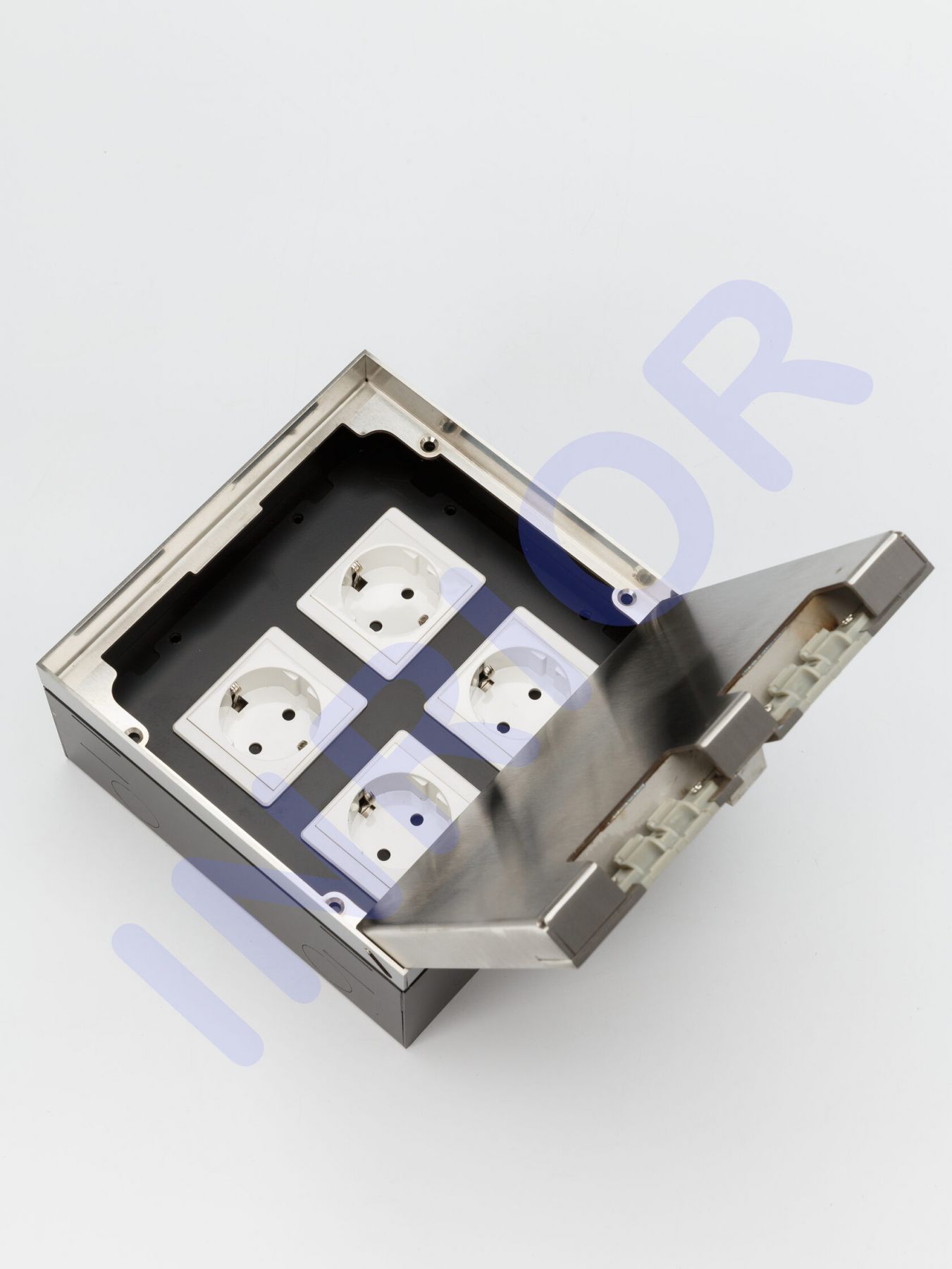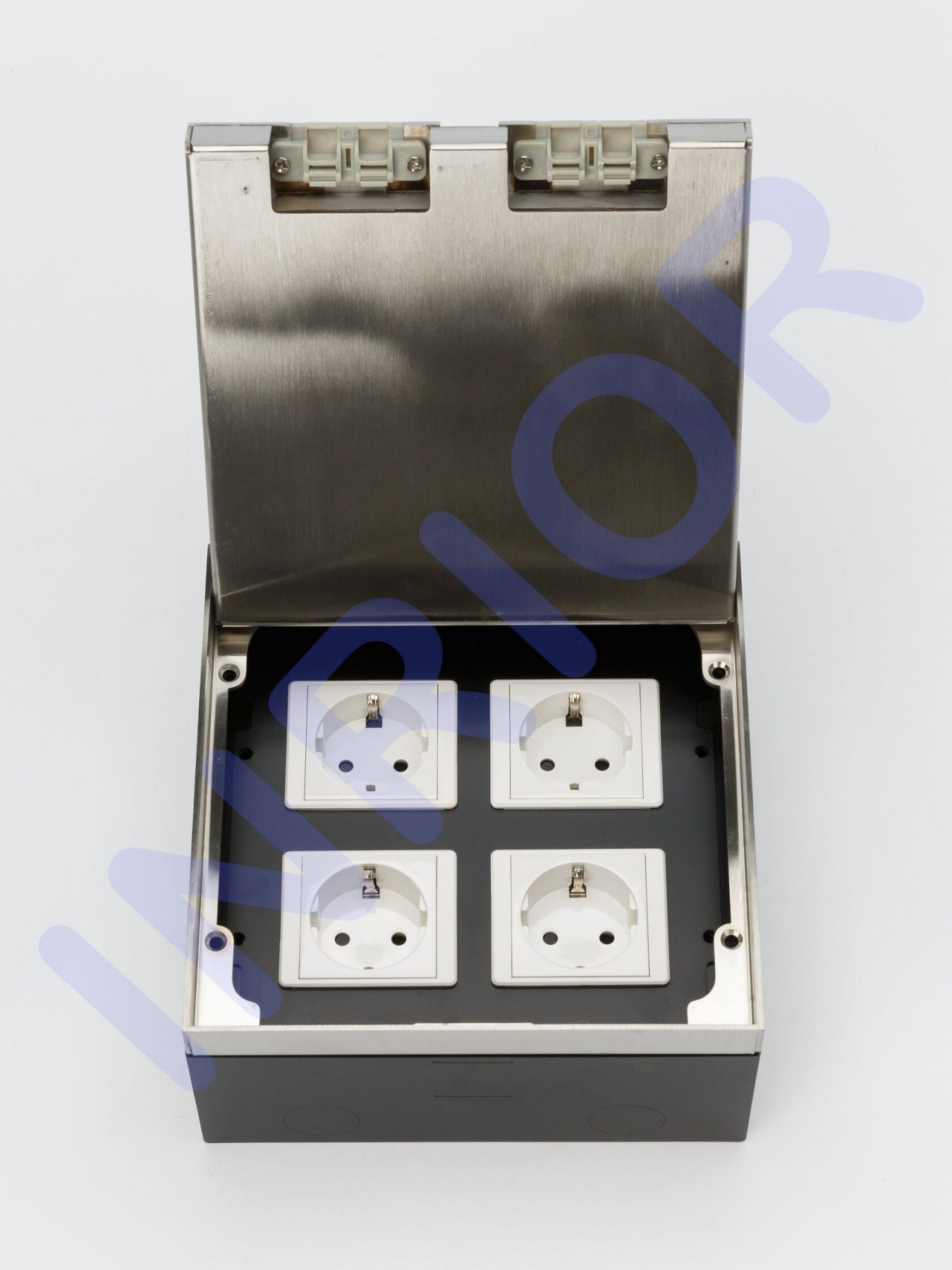 Розетка для скрытой установки INRIOR DB-03-90, в пол, в столешницу, влагозащитная IP55, на 4 EURO розетки, возможна установка информационных портов или USB Спецификация Наименование: INRIOR DB-03-90 Количество модулей: на 4 EURO розетки, возможна установка информационных портов или USB Напряжение 220-250 В Максимальный ток 16 А Максимальная мощность 3600 Вт Материал: Нержавеющая сталь/Розетки из пластика Врезное отверстие ДхШхВ: 18х18х9 см Размер под наполнение крышки: 17,1х14,8х1,7 см Данная розетка подходит для фальшпола, так же наливного пола, заливного пола, жидкого пола, и для всех других видов полов. Розетка для скрытой установки INRIOR DB-03-90, в пол, в столешницу, влагозащитная IP55, на 4 EURO розетки, возможна установка информационных портов или USB. Розеточный блок для скрытой установки в пол, IP55 влагозащитный, сразу в сборе, с монтажной коробкой.