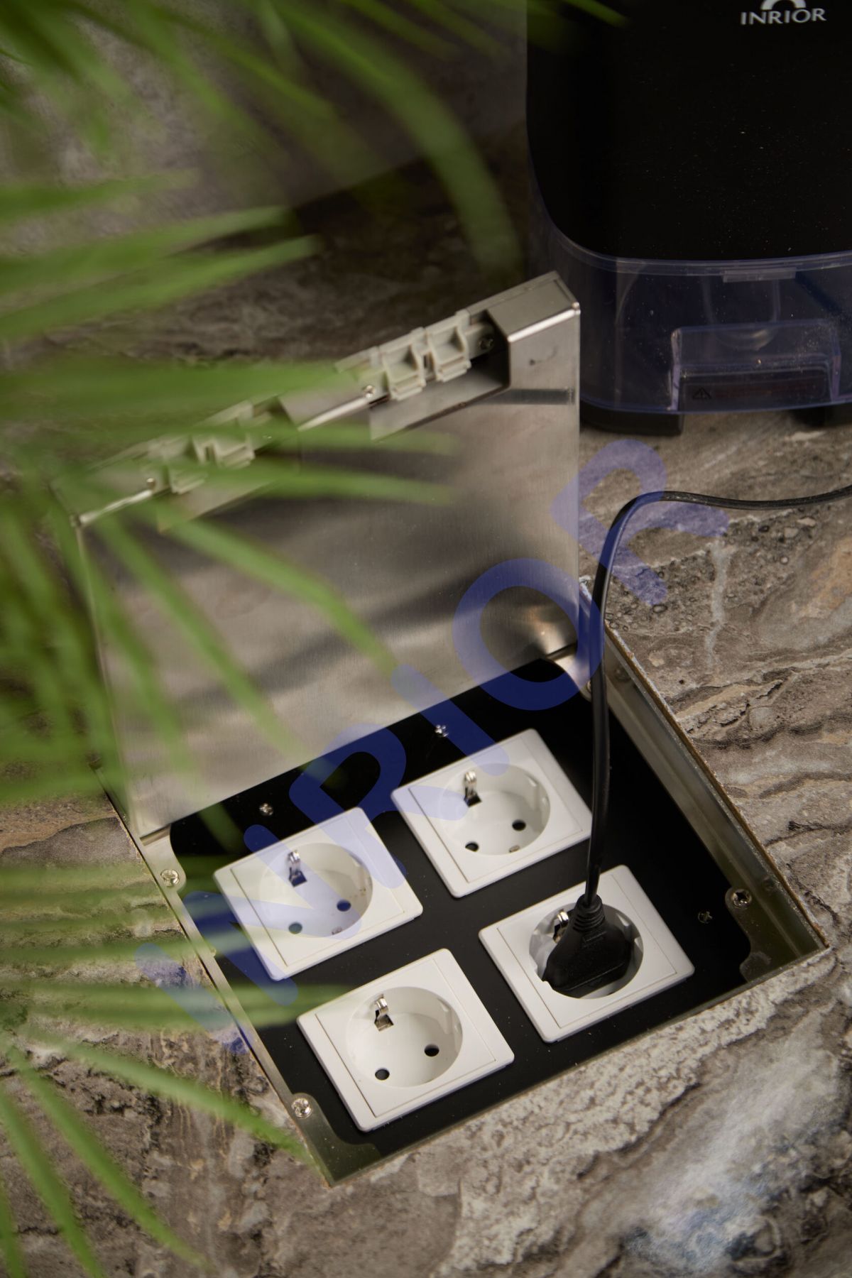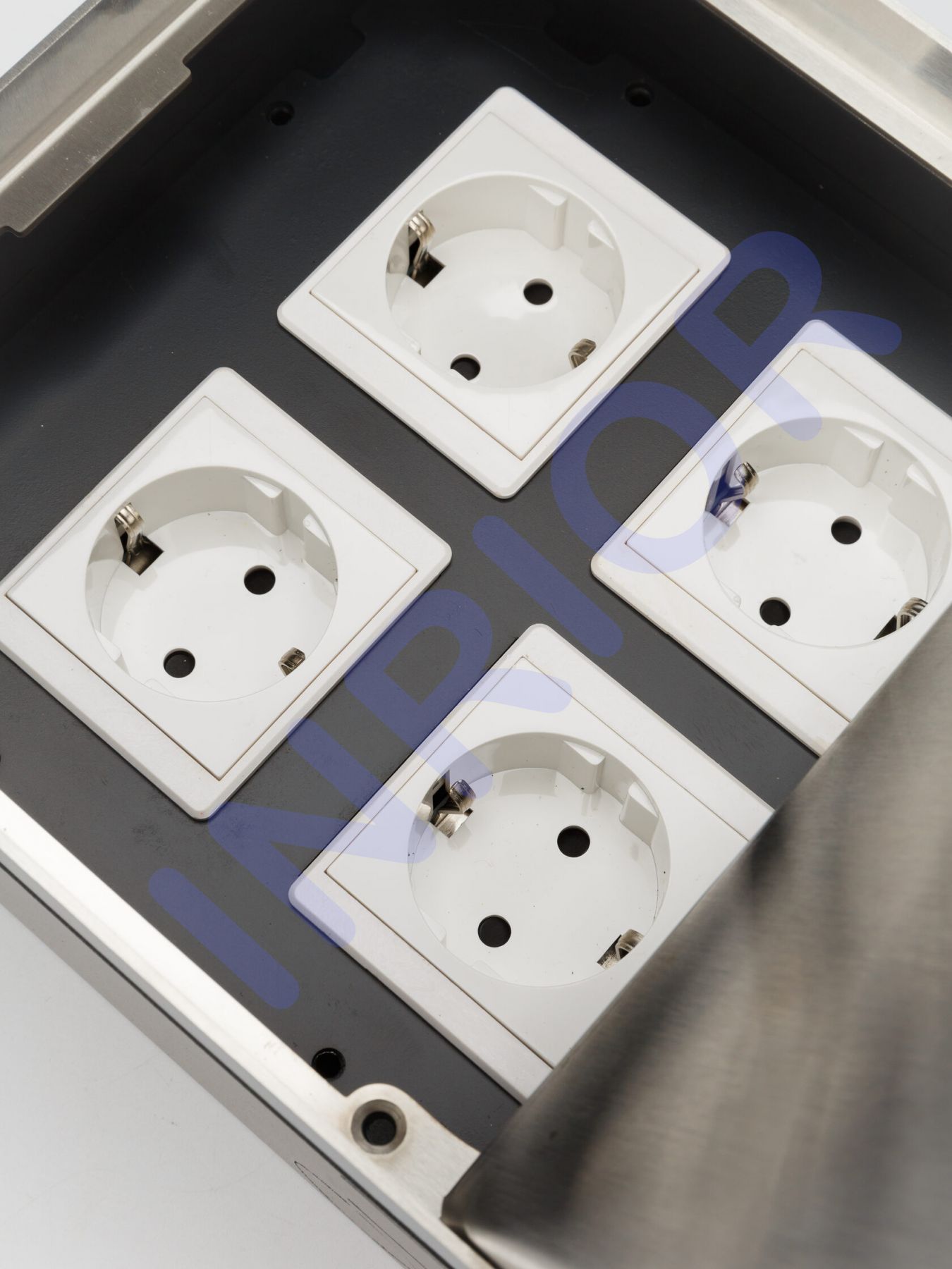 Розетка для скрытой установки INRIOR DB-03, в пол, в столешницу, влагозащитная IP55, на 4 EURO розетки, возможна установка информационных портов или USB