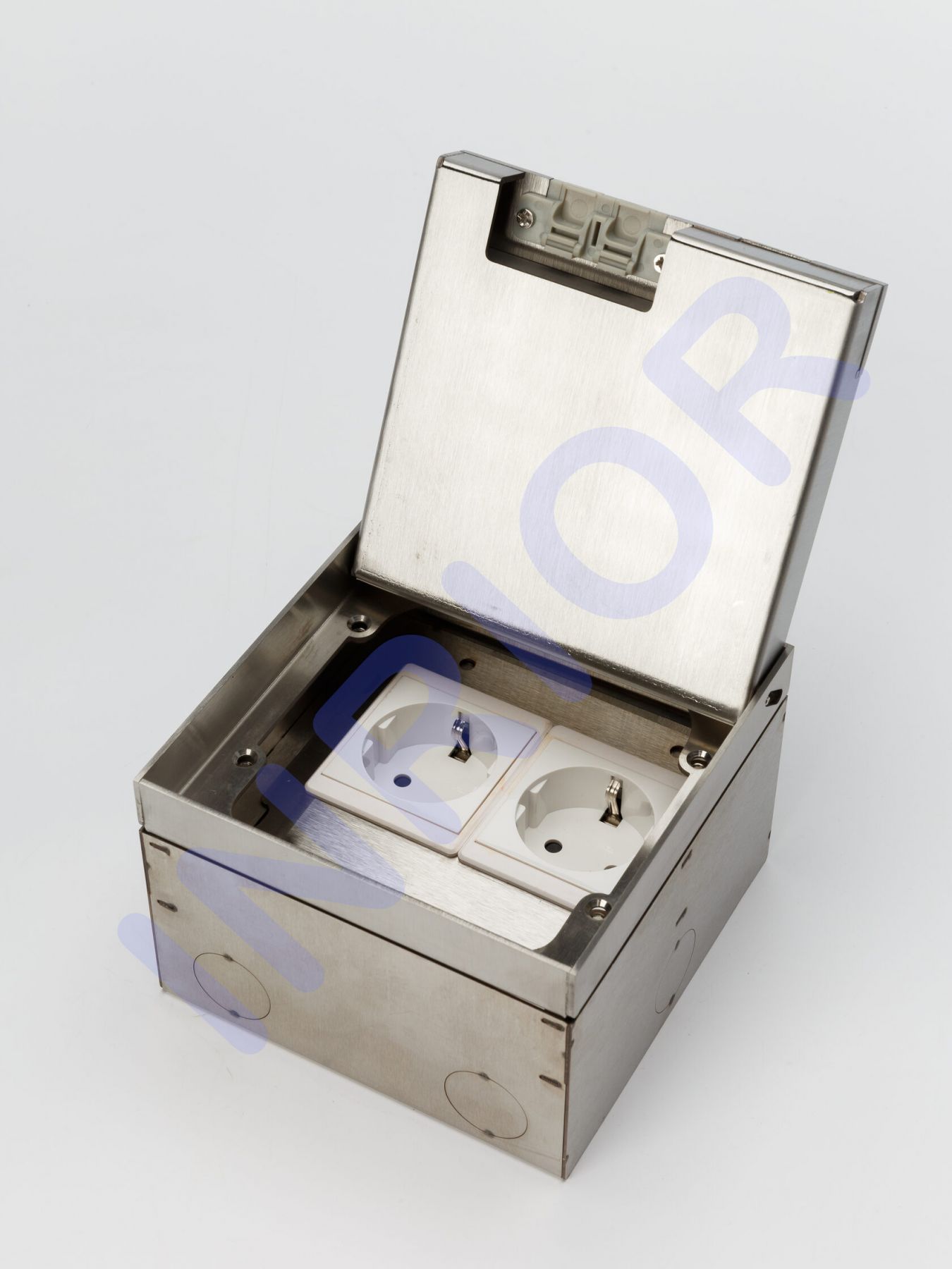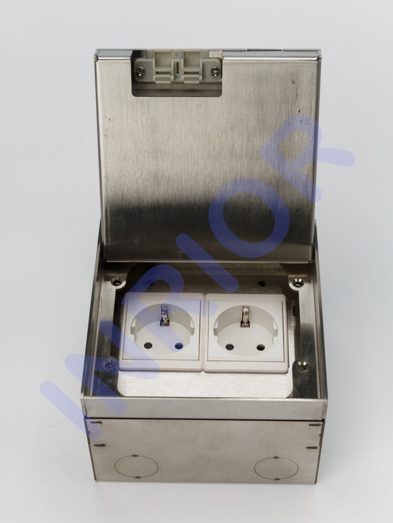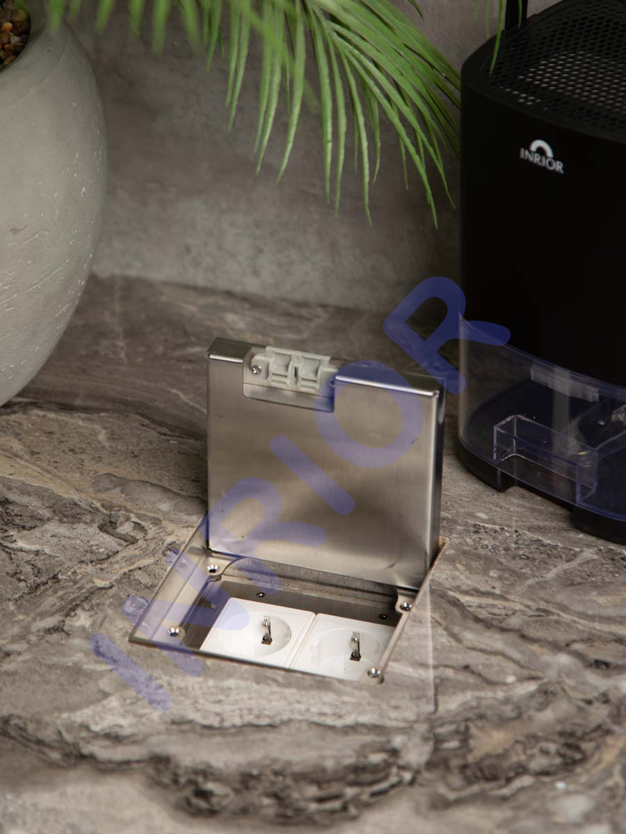 Розетка для скрытой установки INRIOR DB-90, в пол, в столешницу, влагозащитная IP55, на 2 EURO розетки, возможна установка информационных портов или USB Спецификация Наименование: INRIOR DB-90 Количество модулей: на 2 EURO розетки, возможна установка информационных портов или USB Напряжение 220-250 В Максимальный ток 16 А Максимальная мощность 3600 Вт Материал: Нержавеющая сталь/Розетки из пластика Врезное отверстие ДхШхВ: 12,1х12,2х9 см Размер под наполнение крышки: 11х9,8х1,5 см Данная розетка подходит для фальшпола, так же наливного пола, заливного пола, жидкого пола, и для всех других видов полов. Розетка для скрытой установки INRIOR DB-90, в пол, в столешницу, влагозащитная IP55, на 2 EURO розетки, возможна установка информационных портов или USB. Розеточный блок для скрытой установки в пол, IP55 влагозащитный, сразу в сборе, с монтажной коробкой.