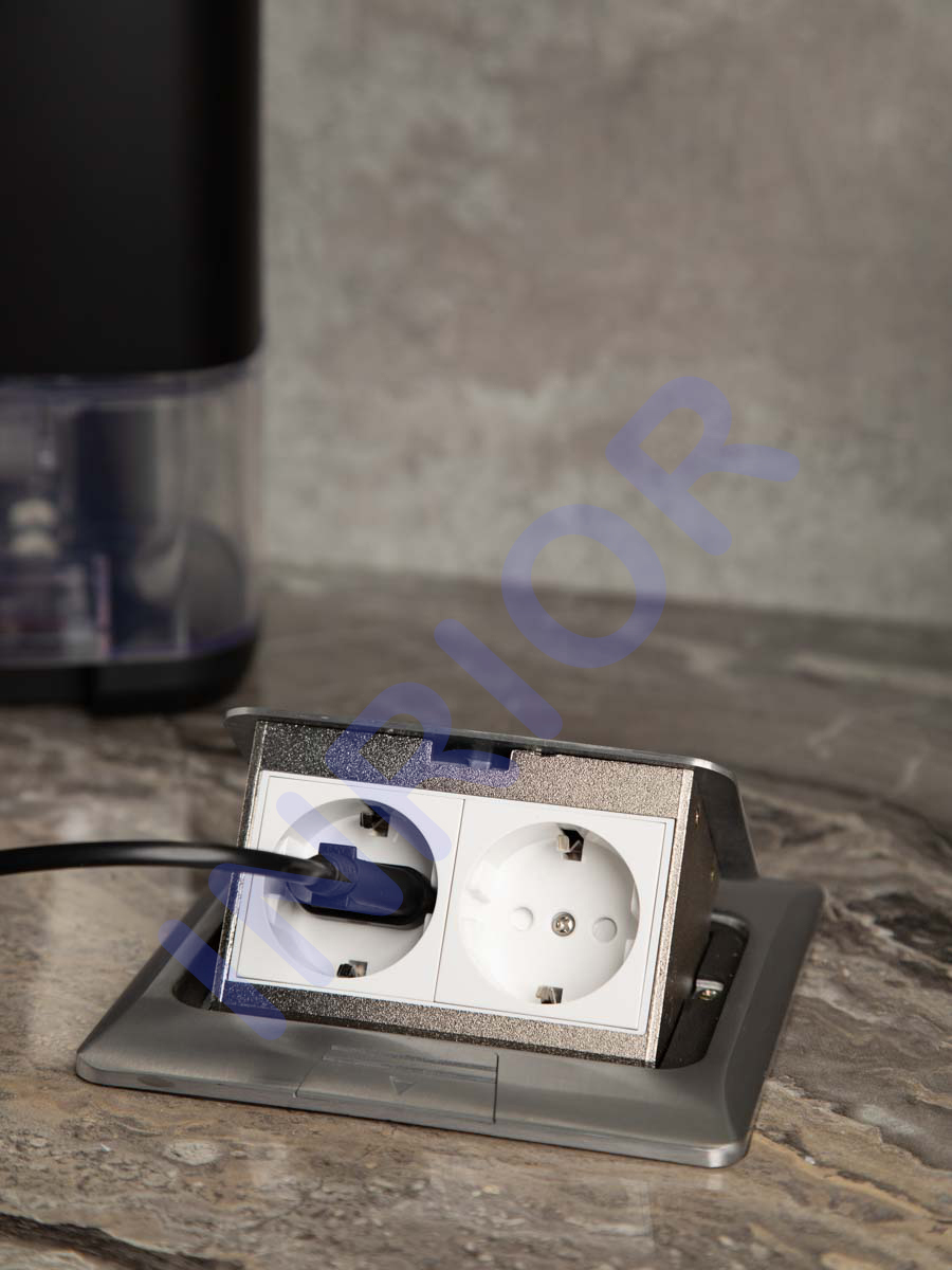 Розетка для установки в пол INRIOR DB-02, влагозащитная IP55, на 2 EURO розетки