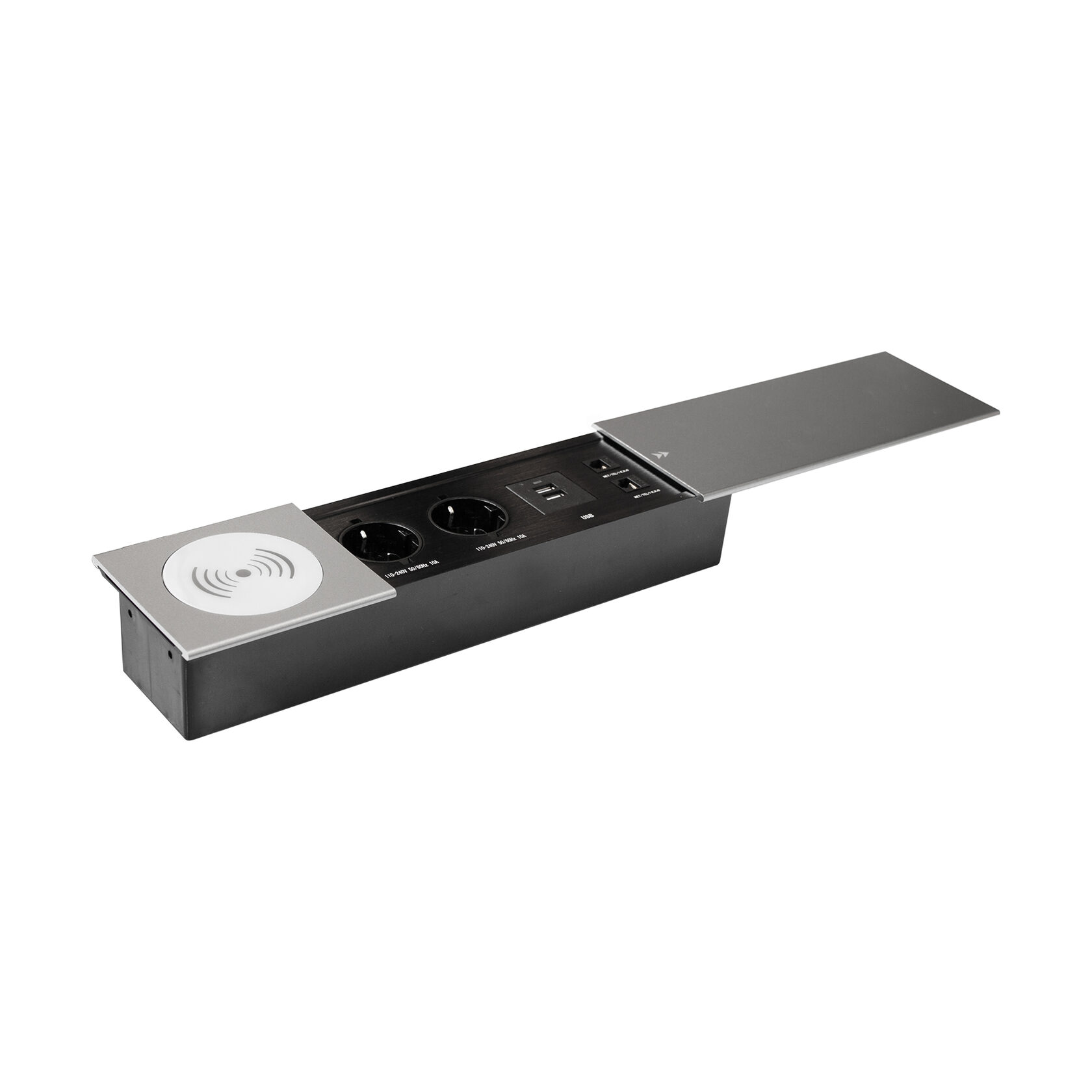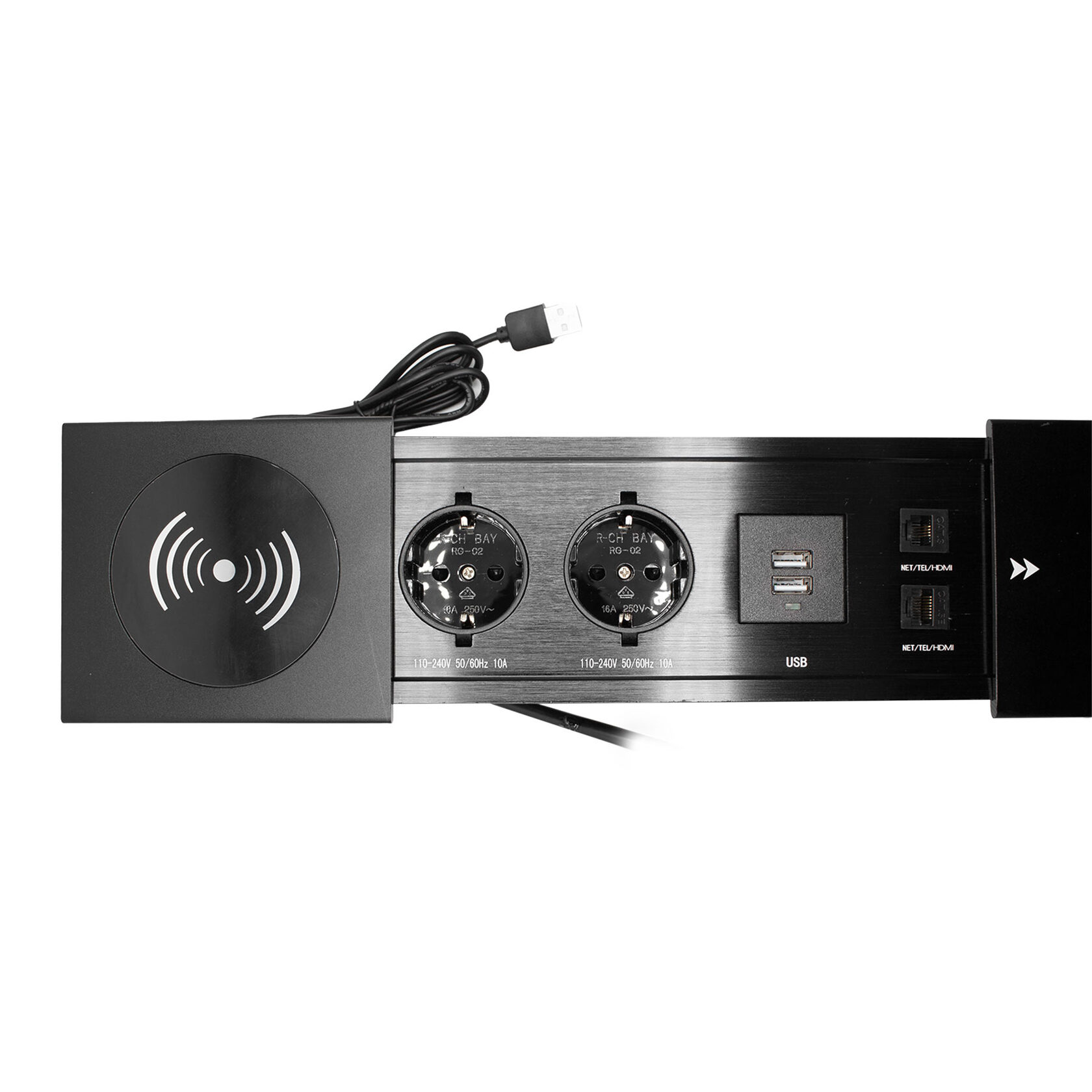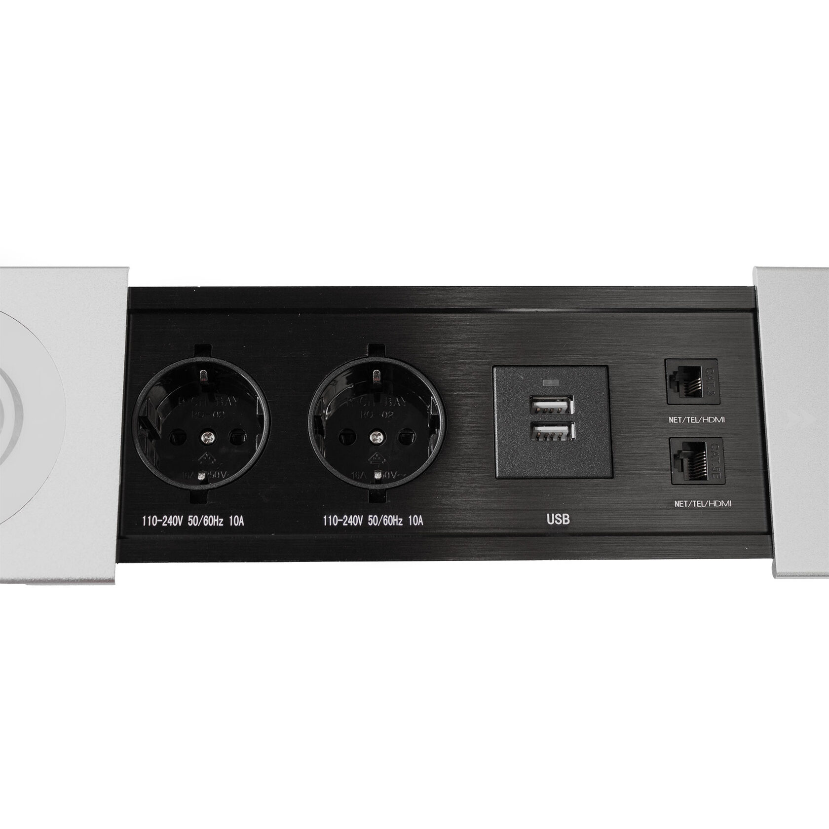 Розетка встраиваемая, врезная, офисная, удлинитель для офиса информационный AB-01 (2 RJ45 5eUTP, 2 USB A, 2 EURO, беспроводная зарядка)