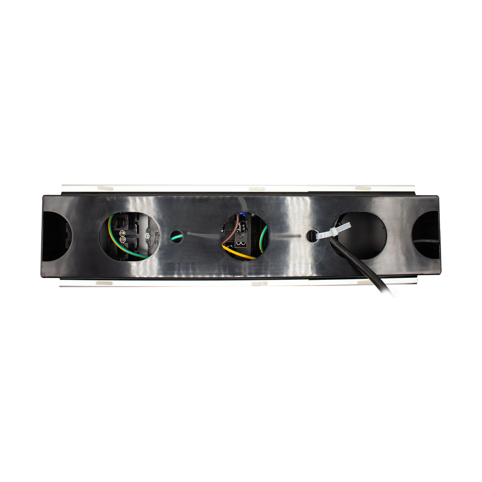 Спецификация Выдвижная розетка сертифицирована в РФ. Гарантия 2 года. Комплектация: Полностью в сборе: с внутренней проводкой, монтажной коробкой, проводом 1.5 м с вилкой, информационные порты выполнены как удлинители, USB тип A зарядные. Наименование AB-01-80 Количество розеток - 2 RJ45 5eUTP, 2 USB A, 2 EURO, беспроводная зарядка Напряжение 220-240 В USB - 5V, 2.1A (10,5 W) Максимальный ток 16 А Максимальная мощность 3600 Вт Цвет корпуса Серебристый Материал: Корпус, верхняя рамка, установочная коробка из металла Розетка встраиваемая, врезная, офисная, удлинитель для офиса информационный AB-01-80 (серебристый, 2 RJ45 5eUTP, 2 USB A, 2 EURO, беспроводная зарядка) с проводом 1,5 м - создан для организации рабочего пространства в доме или офисе. Практичный и элегантный дизайн удлинителя AB-01-80 повышает комфорт Вашей работы. Встроенные розетки AB-01-80 оснащены магнитной крышкой со скользящим открытием, которая защищена от влаги и грязи. Удлинитель прилегает к столешнице вплотную, создавая почти гладкую поверхность. Идеально подходит для использования офисах, выставочных и конференц-залах, а также в магазинах и гостиницах. Скрытые розетки AB-01-80 пригодятся везде, где мы заботимся об эстетическом окружении. Три цвета отделки: черный и серебристый – хорошо сочетаются с письменными столами черного, белого, серого и коричневого цветов в качестве настольного аксессуара.