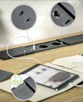 Спецификация Выдвижная розетка сертифицирована в РФ. Гарантия 2 года. Комплектация: Полностью в сборе: с внутренней проводкой, монтажной коробкой, проводом 1.5 м с вилкой, информационные порты выполнены как удлинители, USB тип A и тип C зарядные. Наименование ST-80 Врезные габариты: 28.8х7.5х5 см Количество розеток - HDMI, RJ45 6 UTP, USB C, USB A, 2 EURO Напряжение 220-240 В USB - 5V, 3A (15,0 W) Максимальный ток 16 А Максимальная мощность 3600 Вт Цвет корпуса - Серебристый Материал: Корпус, верхняя рамка, установочная коробка из металла Розетка встраиваемая, врезная, офисная, удлинитель для офиса информационный ST-80 (серебристый, HDMI, RJ45 6 UTP, USB C, USB A, 2 EURO) с проводом 1,5 м - создан для организации рабочего пространства в доме или офисе. Практичный и элегантный дизайн удлинителя ST-80 повышает комфорт Вашей работы. Встроенные розетки ST-80 оснащены магнитной крышкой со скользящим открытием, которая защищена от влаги и грязи. Удлинитель прилегает к столешнице вплотную, создавая почти гладкую поверхность. Идеально подходит для использования офисах, выставочных и конференц-залах, а также в магазинах и гостиницах. Скрытые розетки ST-80 пригодятся везде, где мы заботимся об эстетическом окружении. Три цвета отделки: белый, черный и алюминиевый – хорошо сочетаются с письменными столами черного, белого, серого и коричневого цветов в качестве настольного аксессуара.