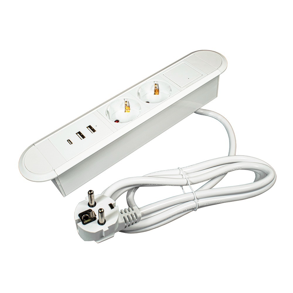 Спецификация Выдвижная розетка сертифицирована в РФ. Гарантия 2 года. Комплектация: Полностью в сборе: с внутренней проводкой, монтажной коробкой, проводом 1.5 м с вилкой, два USB типа A зарядных и один USB C зарядный. Наименование BM-02-10 Габаритные размеры: 27.3 см х 5.35 см Врезные размеры: 22.6 см х 4.45 см х 4.45 см Количество розеток - 2 USB A, 1 USB C, 2 EURO Напряжение 110-240 В USB - 2хUSB type A + USB type C - 5 В, 3 А; Максимальный ток 12 А Максимальная мощность 2700 Вт Цвет корпуса Белый Материал: Корпус, верхняя рамка, установочная коробка из металла, боковины ABS пластик Розетка встраиваемая, врезная, розетка в стол, удлинитель для кухни и офиса BM-02-10 (белый, 2 USB A, 1 USB C, 2 EURO) Блок розеток BM-02-10 - малогабаритный встраиваемый блок розеток, включающий 2 розетки SCHUKO и набор зарядных устройств разных типов USB A - 2 шт. и USB С (5В), а также имеет встроенный выключатель. Блок розеток BM-02-10 предназначены для установки в мебель и будет прекрасно смотреться в письменных столах и тумбах. Занимая минимальную площадь и имея оптимальную комплектацию, розеточный блок BM-02-10 будет отличной опцией для любой мебели, особенно мебели для офисов, кабинетов, конференц-залов. Выключатель, установленный в корпусе блока розеток BM-02-10, находится в одной плоскости с розетками и USB и состояние вкл/выкл сигнализирует светодиод миниатюрных размеров, смонтированный внутри выключателя. Блок розеток BM-02-10 не только удачное техническое решение вопросов подключения гаджетов к сети 220В и их зарядки, но и отличный выбор с точки зрения дизайна и экономии площади на рабочей поверхности.