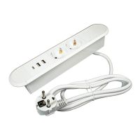 Спецификация Выдвижная розетка сертифицирована в РФ. Гарантия 2 года. Комплектация: Полностью в сборе: с внутренней проводкой, монтажной коробкой, проводом 1.5 м с вилкой, два USB типа A зарядных и один USB C зарядный. Наименование BM-02-10 Габаритные размеры: 27.3 см х 5.35 см Врезные размеры: 22.6 см х 4.45 см х 4.45 см Количество розеток - 2 USB A, 1 USB C, 2 EURO Напряжение 110-240 В USB - 2хUSB type A + USB type C - 5 В, 3 А; Максимальный ток 12 А Максимальная мощность 2700 Вт Цвет корпуса Белый Материал: Корпус, верхняя рамка, установочная коробка из металла, боковины ABS пластик Розетка встраиваемая, врезная, розетка в стол, удлинитель для кухни и офиса BM-02-10 (белый, 2 USB A, 1 USB C, 2 EURO) Блок розеток BM-02-10 - малогабаритный встраиваемый блок розеток, включающий 2 розетки SCHUKO и набор зарядных устройств разных типов USB A - 2 шт. и USB С (5В), а также имеет встроенный выключатель. Блок розеток BM-02-10 предназначены для установки в мебель и будет прекрасно смотреться в письменных столах и тумбах. Занимая минимальную площадь и имея оптимальную комплектацию, розеточный блок BM-02-10 будет отличной опцией для любой мебели, особенно мебели для офисов, кабинетов, конференц-залов. Выключатель, установленный в корпусе блока розеток BM-02-10, находится в одной плоскости с розетками и USB и состояние вкл/выкл сигнализирует светодиод миниатюрных размеров, смонтированный внутри выключателя. Блок розеток BM-02-10 не только удачное техническое решение вопросов подключения гаджетов к сети 220В и их зарядки, но и отличный выбор с точки зрения дизайна и экономии площади на рабочей поверхности.