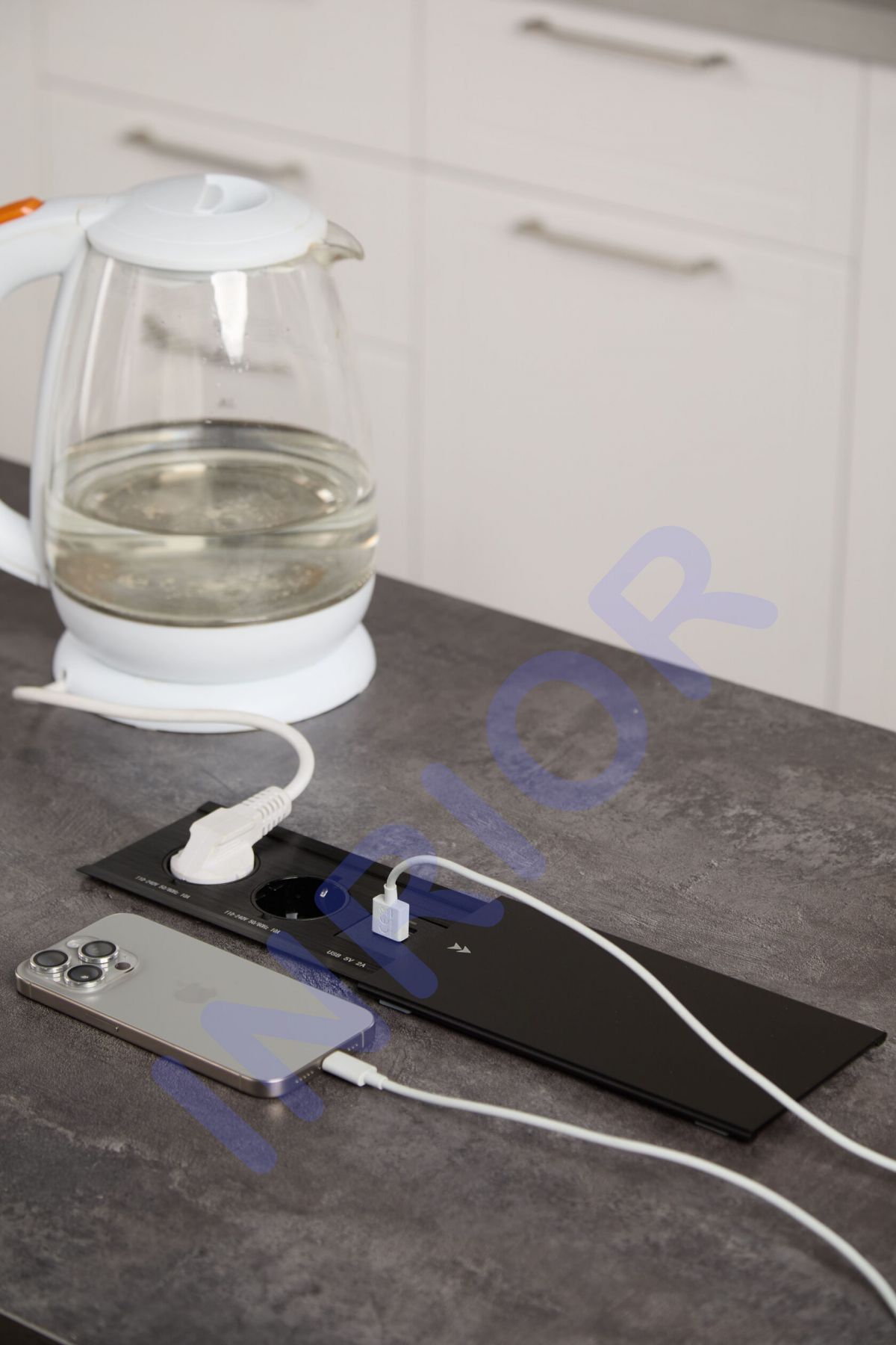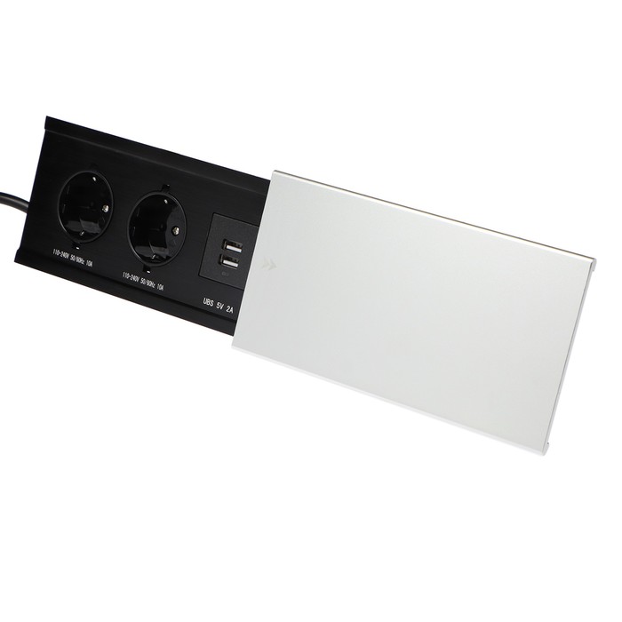 Выдвижная розетка сертифицирована в РФ. Гарантия 2 года. Комплектация: Полностью в сборе: с внутренней проводкой, монтажной коробкой, проводом 1.5 м с вилкой, два USB типа A зарядных. Наименование: ST-02-80 Габаритные размеры: 20 см х 10 см х 3,2 см (не установочные) Количество розеток - 2 USB A, 2 EURO Напряжение: 110-240 В USB - 5V, 2A Максимальный ток: 10 А Максимальная мощность: 2300 Вт Цвет корпуса: Серебристый Материал: Корпус, верхняя рамка, установочная коробка из металла Розетка встраиваемая, врезная, розетка в стол, удлинитель для кухни и офиса ST-02-80 (серебристый, 2 USB A, 2 EURO) - создана для организации рабочего пространства в доме или офисе. Практичный и элегантный дизайн удлинителя ST-02-80 повышает комфорт Вашей работы. Встроенные розетки ST-02-80 оснащены крышкой со скользящим открытием, которая защищает от влаги и грязи. Удлинитель прилегает к столешнице вплотную, создавая почти гладкую поверхность. Идеально подходит для использования на кухонных столешницах, в офисах, выставочных и конференц-залах, а также в магазинах и гостиницах. Скрытые розетки ST-02-80 пригодятся везде, где мы заботимся об эстетическом окружении. Два цвета отделки: черный и алюминиевый – хорошо сочетаются с письменными столами черного, серого и коричневого цветов в качестве настольного аксессуара.