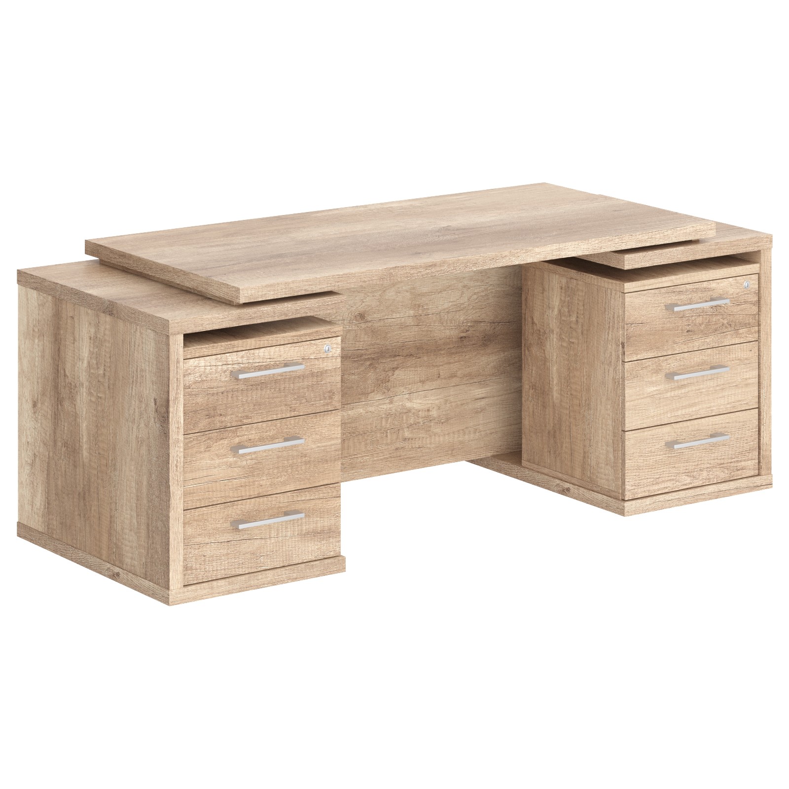 Столешница и опоры из ЛДСП толщиной 38мм с кромкой ПВХ в цвет ЛДСП. Стол комплектуется двумя тумбами. Направляющие роликовые. Габариты столешницы: 1500х750х38.