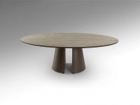 Овальный журнальный столик, каркас из металла и МДФ с оксидно-коричневым покрытием. Столешница из МДФ с высокопрочным меламиновым покрытием под травертин, с оксидно-коричневыми краями.