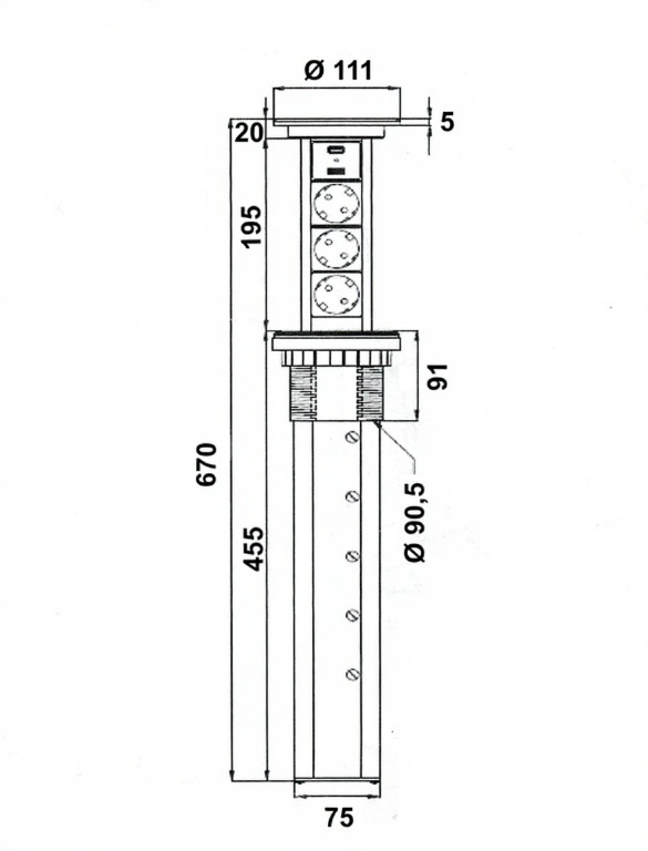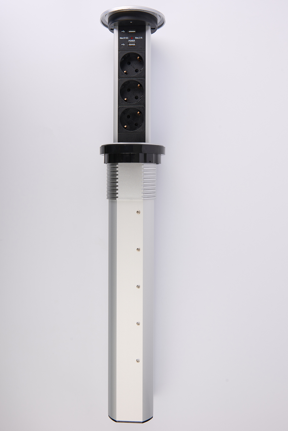 Спецификация Наименование GENERAL-80 Количество розеток 3 EURO + 2 USB Напряжение 95В-250В Максимальный ток 16 А Максимальная мощность 3500 Вт Цвет корпуса Серебристый Врезное отверстие Диаметр — 95 мм Метки товара: Сенсорная выдвижная розетка с электроприводом USB 1A Выдвижная розетка сертифицирована в РФ. Гарантия 2 года. Сенсорная выдвижная розетка General с электроприводом (на 3 EURO розетки, 2 USB) Плавная работа электропривода, подсветка сенсора при работе.