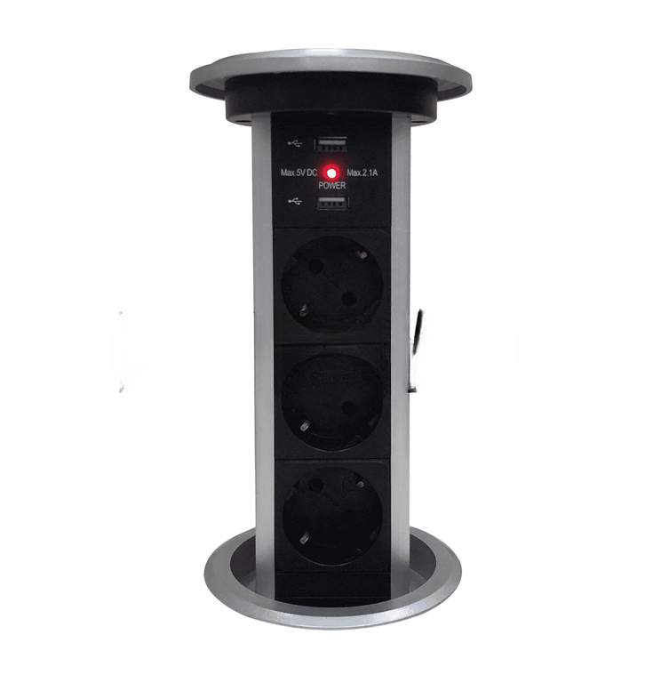 Сенсорная выдвижная розетка GENERAL с электроприводом (на 3 EURO розетки, 2 USB)