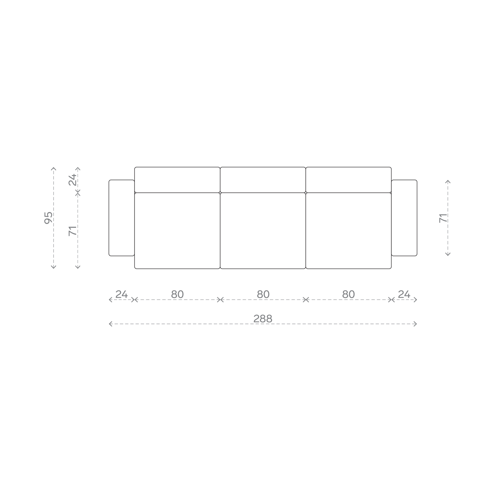 ШИК Диван из трех модулей с подлокотниками 288х95 см