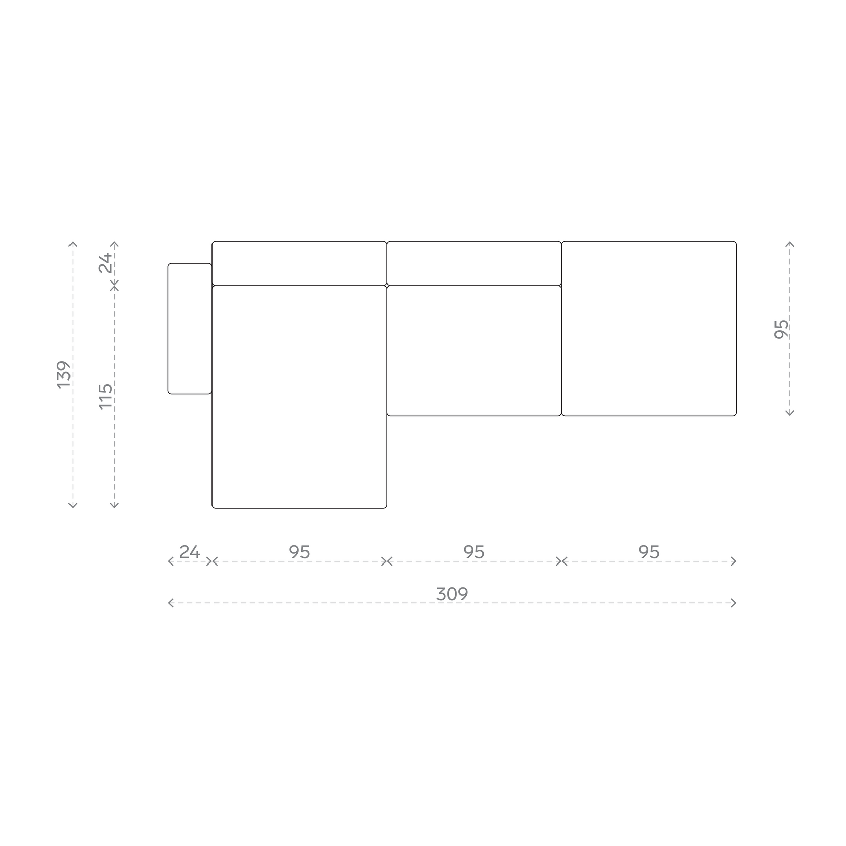 ШИК Диван из трех модулей с подлокотником 309х139 см