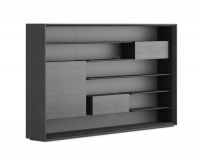 Столешница стола руководителя имеет составную конструкцию – верхняя часть выполнена из 4-х сегментов трапецевидной формы, 3 сегмента – МДФ, толщиной 16 мм, облицованных шпоном, тонированным в цвет "Римский дуб TA24YA", один сегмент МДФ инкрустированный натуральной кожей благородного серого оттенка. Сегменты крепятся к подстолью, выполненному со скосом 30 градусов и облицованному шпоном, тонированным в цвет "Римский дуб TA24YA". Общая толщина столешницы в сборе 50 мм. Крышка кабель канала выполнена из полированного металла, шириной 50 мм и толщиной 4 мм и имеет специальные выемки слева и справа под коммуникации. Столешница устанавливается на мощное металлическое подстолье, изготовленное из профиля сложного сечения и с одной стороны опирается на профилированную на металлическую ногу, установленную под углом 120 градусов, а с другой на опорную тумбу. Сторона размещения тумбы определяет ориентацию стола. Стол не является универсальным. Опорная тумба выполнена с 2-мя ящиками 2-мя нишами, закрытыми глухими фасадами. Правая ниша оборудована полкой, которая делит ее на 2 равных части. Левая ниша снабжена вертикальной стойкой в которой смонтирован коммуникационный блок, который включает в себя 3 розетки 220В, 1 телефонную розетку и 1 розетку для подключения интернета. В верхнем топе тумбы отверстие для коммуникаций. Наружная часть тумбы – шпон. Фасады – шпон, ручка отсутствует, ее заменяет верхняя часть фасада, скошенная под 30 градусов и выступающая за габариты топа, что позволяет открывать двери и ящики. Боковины и задняя стенка тумбы также выступают над поверхностью топа на 18 мм.