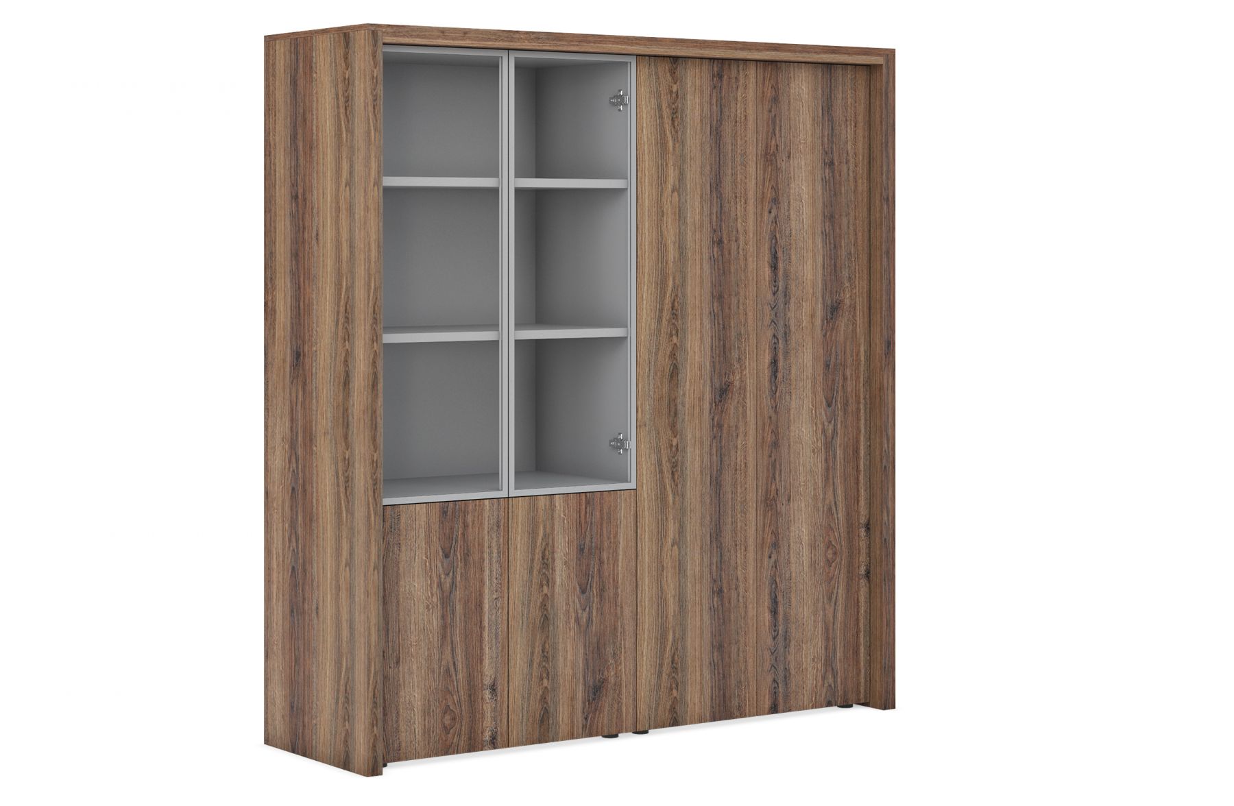 Коллекция кабинетов ERA – яркий символ прогресса человеческой цивилизации и возвращения к истокам бытия. В “рубленых» брутальных формах монолитных предметов интерьера заложена мощь интеллекта нашего современника и тысячелетняя мудрость предков. В простоте конструктивных решений и колорите инновационных материалов под натуральные дерево и кожу обнаруживается совершенство. Владелец этого кабинета знает, как устроен мир, он не будет размениваться по мелочам, когда идет к своей цели. Он ценит настоящую, а не мнимую, роскошь, его бизнес солиден и респектабелен, а удобство и комфорт он ценит превыше всего в жизни. По своей геометрии удлиненная тумба как бы «обтекает» опоры стола. Шкафная группа состоит из 3-х предметов, объединенных под единым топом и декорированных боковыми панелями из современного и «легкого» материала тамбурат. Сами шкафы слегка «утоплены» в паспарту, что придает законченный вид всей композиции.
