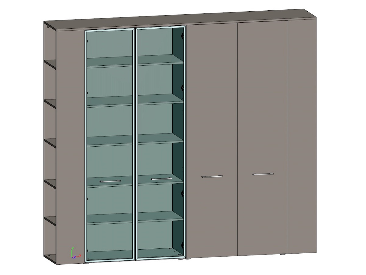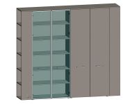 Шкаф высокий и гадероб с боковыми стеллажами (двери в ал. рамке, стекло прозрачное и ЛДСП)