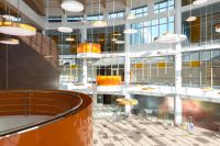 | Быстрая трансформация. Секции раздвижных цельностеклянных перегородок перемещаются по трекам в потолке на двух роликах-подвесах и фиксируются друг к другу с помощью запирающего механизма.