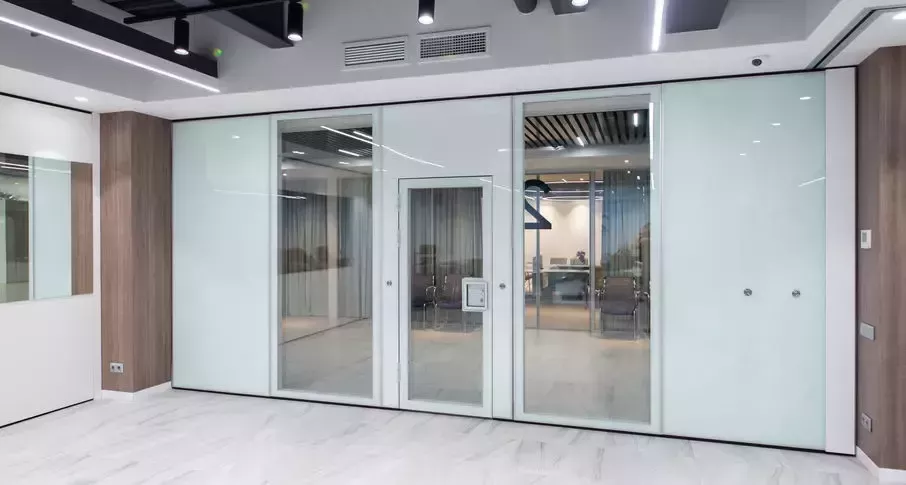 | Звукоизоляция. В собранном виде раздвижные стеклянные перегородки обладают звукоизоляцией до 42 дБ. Показатель достигается за счет уплотняющих элементов, толстого стекла, шумопоглощающего материала в профильной системе.
