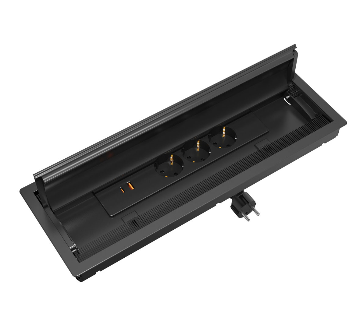Встраиваемый блок розеток с крышкой Solo Into PRO ЧЕРНЫЙ