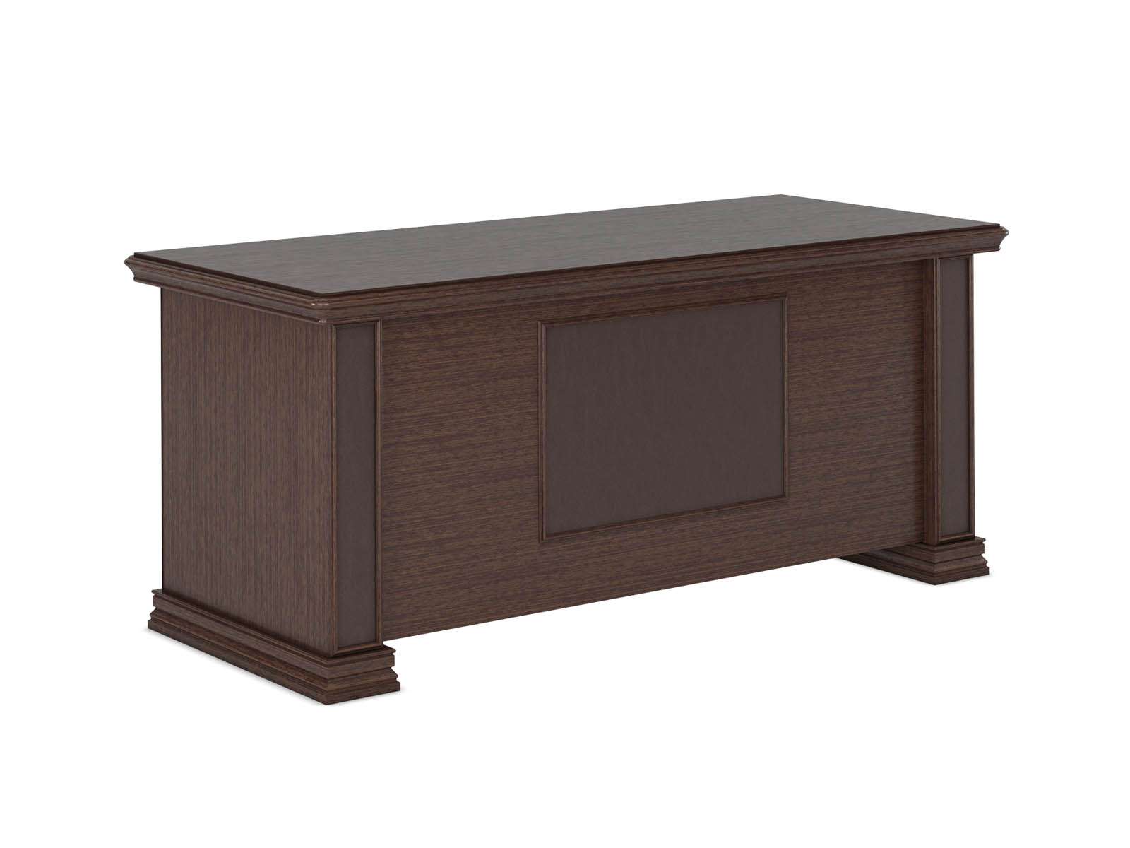 Классический кабинет руководителя Porto - мебель, которая радует своего владельца каждый день. Эта модель разработана итальянским дизайнером Marco Bortolin (Марко Бортолин). Что такое кабинет руководителя классический? Мебель с фигурными бордюрами, карнизами и цоколями, а в Porto еще есть декоративные вставки под кожу с крокодиловым тиснением. Эти детали подчёркивает статус уверенного в себе, респектабельного и надежного владельца. Кабинет PORTO представлен в изысканном цвете - благородном Венге ЦАВО. Стол руководителя можно дополнить брифингом, боковой приставкой, одной или двумя подвесными тумбами. Большая греденция может использоваться как с панелью, где вы можете поместить телевизор, а на стеклянные полки поставить любимые предметы декора, так и без панели, в качестве низкого шкафа. Кабинет одинаково хорошо смотрится как в офисе, так и в качестве домашнего кабинета, украшая интерьер частного дома или коттеджа.