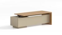 AURUS это современный лаконичный кабинет, без лишних чрезмерных акцентов, идеальное сочетание цены и качества, универсальность модульных систем по шкафам и столам переговоров. Шпон столешниц, опор и фасадов гармонично сочетается с однотонным ламинатом панелей МДФ.