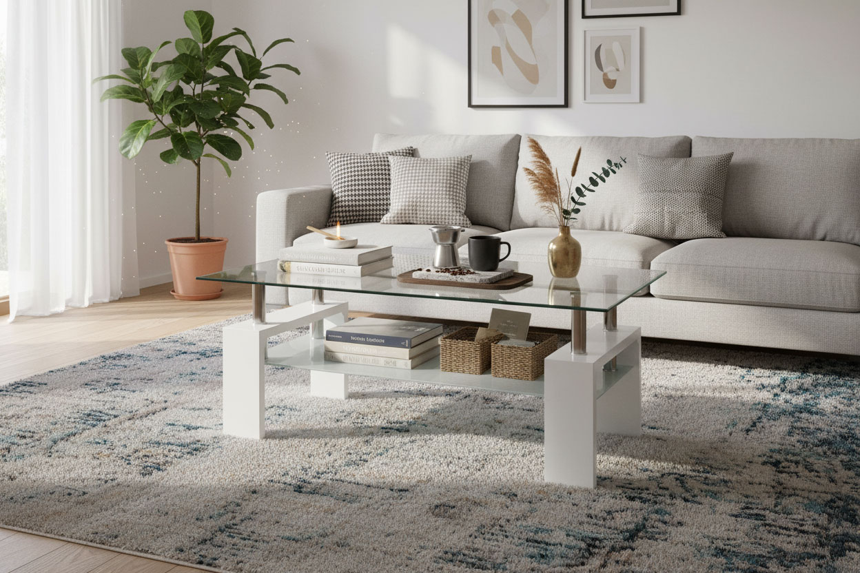 Вес, кг: 23 / Высота (см): 45 / Гарантия, мес.: 12 / Глубина (см): 60 / Количество коробок: 2 / Материал каркаса: МДФ / Материал столешницы: стекло / Необходимость сборки: да / Раздвижной: нет / Размер упаковки 1: 1,06/0,65/0,04 / Размер упаковки 2: 0,61/0,4/0,14 / Страна производитель: Китай / Форма столешницы: прямоугольник / Цвет каркаса: белый / Цвет столешницы: прозрачный / Ширина (см): 100