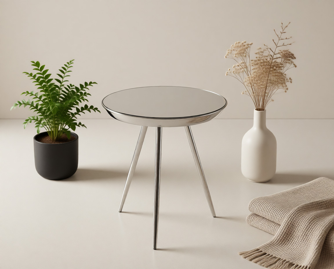 Вес, кг: 4 / Высота (см): 46 / Гарантия, мес.: 12 / Глубина (см): 41 / Количество коробок: 1 / Материал каркаса: металл / Материал столешницы: стекло / Необходимость сборки: да / Раздвижной: нет / Размер упаковки 1: 0,49/0,46/0,095 / Страна производитель: Тайвань (Китай) / Форма столешницы: круг / Цвет каркаса: хром / Цвет столешницы: зеркало / Ширина (см): 41