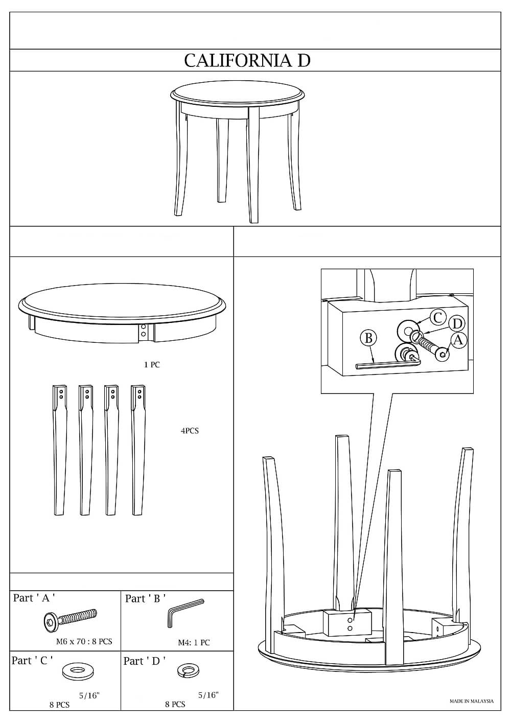 Вес, кг: 8,6 / Высота (см): 55 / Гарантия, мес.: 12 / Глубина (см): 60 / Количество коробок: 1 / Материал каркаса: дерево / Материал столешницы: МДФ / Необходимость сборки: да / Раздвижной: нет / Размер упаковки 1: 0,61/0,75/0,09 / Страна производитель: Малайзия / Форма столешницы: круг / Цвет каркаса: орех / Цвет столешницы: темно-коричневый / Ширина (см): 60