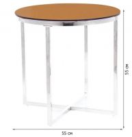 Вес, кг: 12 / Высота (см): 55 / Гарантия, мес.: 12 / Глубина (см): 55 / Количество коробок: 1 / Материал каркаса: металл / Материал столешницы: стекло / Необходимость сборки: да / Раздвижной: нет / Размер упаковки 1: 0,635/0,66/0,13 / Страна производитель: Тайвань (Китай) / Форма столешницы: круг / Цвет каркаса: серебро / Цвет столешницы: оранжевый / Ширина (см): 55