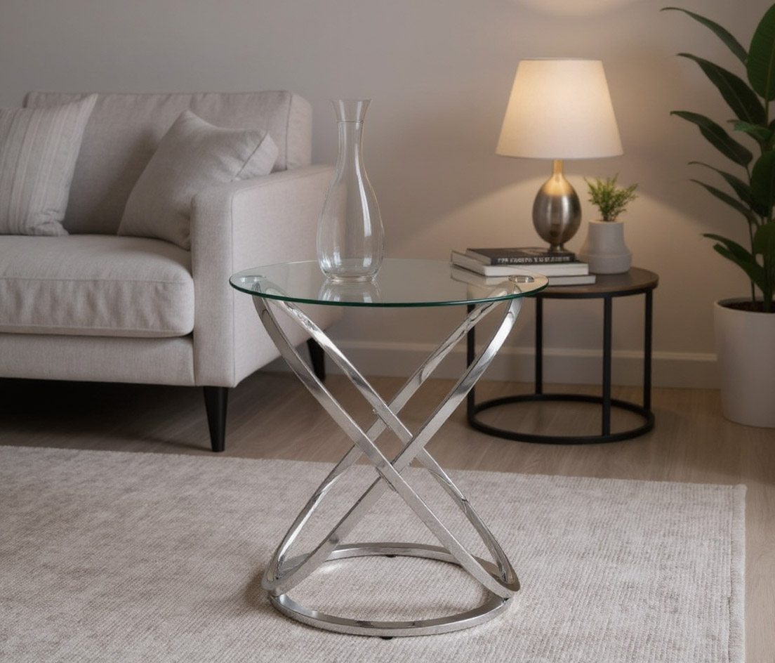 Вес, кг: 8,5 / Высота (см): 56 / Гарантия, мес.: 12 / Глубина (см): 52 / Количество коробок: 1 / Материал каркаса: металл / Материал столешницы: стекло / Необходимость сборки: да / Раздвижной: нет / Размер упаковки 1: 0,59/0,69/0,13 / Страна производитель: Китай / Форма столешницы: круг / Цвет каркаса: хром / Цвет столешницы: прозрачный / Ширина (см): 52