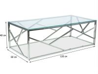 Вес, кг: 20 / Высота (см): 40 / Гарантия, мес.: 12 / Глубина (см): 60 / Количество коробок: 1 / Материал каркаса: металл / Материал столешницы: стекло / Необходимость сборки: да / Раздвижной: нет / Размер упаковки 1: 1,28/0,65/0,145 / Страна производитель: Китай / Форма столешницы: прямоугольник / Цвет каркаса: серебро / Цвет столешницы: прозрачный / Ширина (см): 120