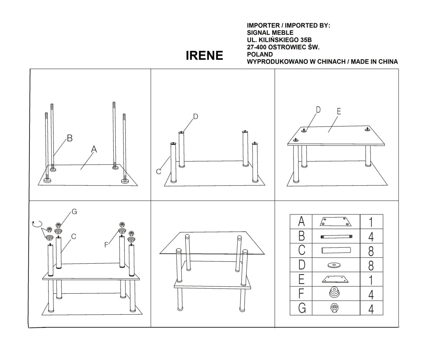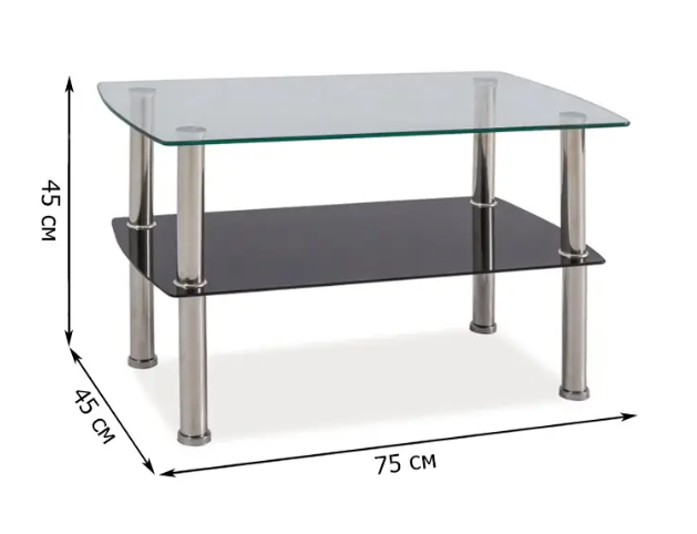 Вес, кг: 10,5 / Высота (см): 45 / Гарантия, мес.: 12 / Глубина (см): 45 / Количество коробок: 2 / Материал каркаса: металл / Материал столешницы: стекло / Необходимость сборки: да / Раздвижной: нет / Размер упаковки 1: 0,47/0,78/0,04 / Размер упаковки 2: 0,095/0,52/0,095 / Страна производитель: Китай / Форма столешницы: прямоугольник / Цвет каркаса: хром / Цвет столешницы: прозрачный / Ширина (см): 75