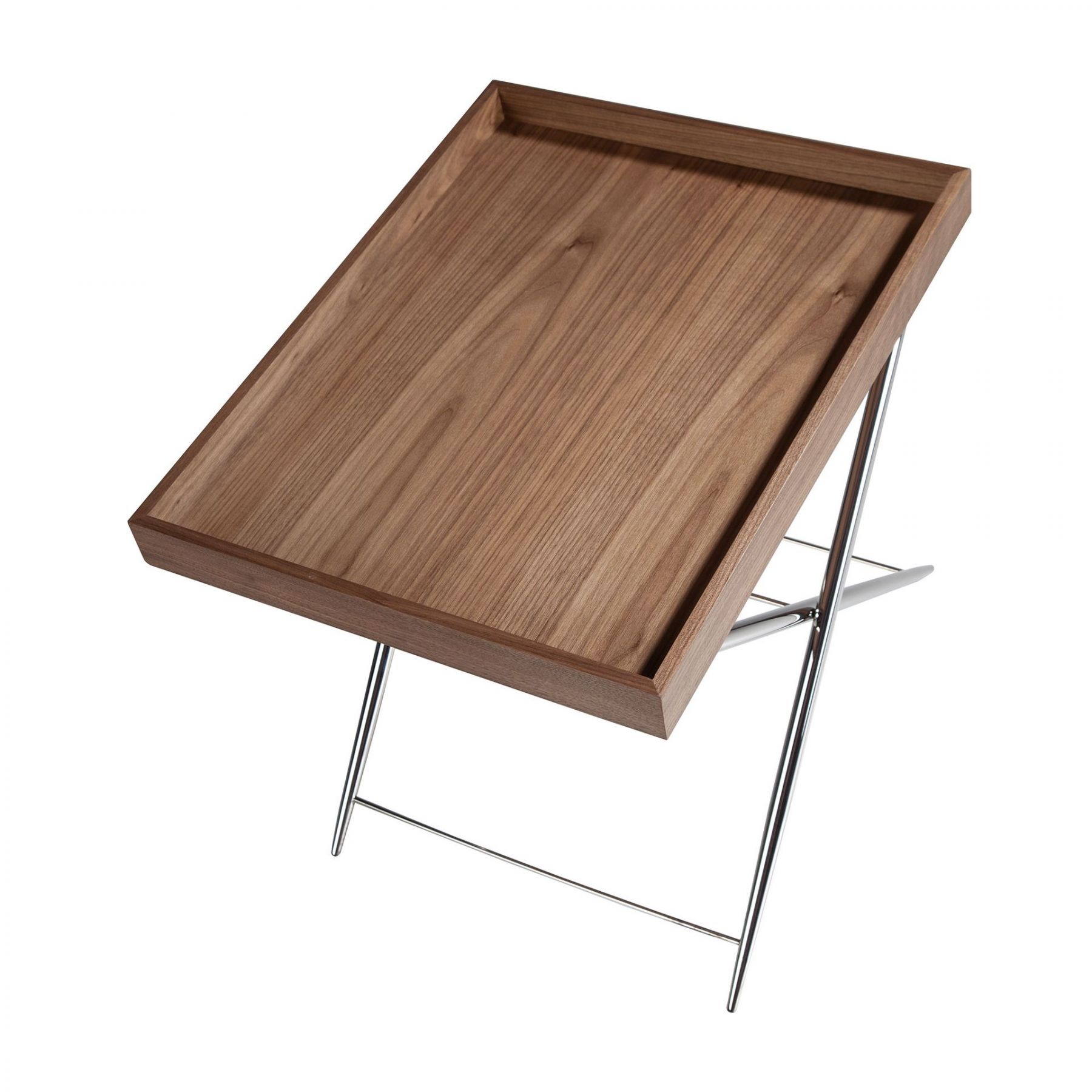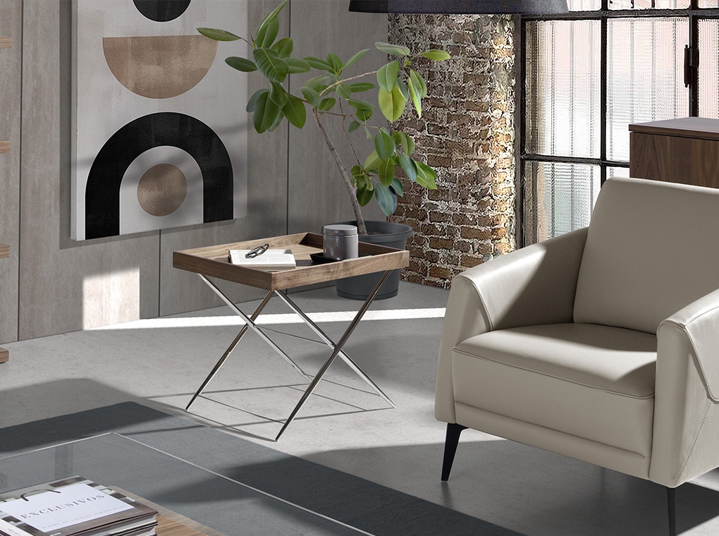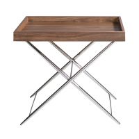 Столик Calidez от фабрики Angel Cerda – «уличный» дизайн для городских европейских интерьеров. Столик Calidez моментально вызывает ассоциации с отдыхом и пикником. Эта модель сильно напоминает походный раскладной аналог, отчего моментально повышается настроение и возникает желание присесть рядом, расслабиться и выпить бокал вина. Такому столику по силам разрядить напряженную обстановку, наполнить дом атмосферой праздника и умиротворения. Столик Calidez имеет прямоугольную форму. Столешница по всему периметру оснащена бортиками одинаковой высоты. Благодаря им, со стола не укатятся круглые предметы, а бьющаяся посуда будет точно полностью стоять на поверхности и не окажется на весу. Материалы изготовления столешницы – МДФ и шпон орехового дерева (в базовом фабричном варианте). Стол оснащен металлической опорой (хромированная сталь). Она сварена из четырех трубчатых ножек, попарно скрещенных между собой. Для устойчивости и прочности конструкция имеет три поперечные перекладины. Вес столика составляет 8 кг. Размеры изделия: ширина – 61 см, высота – 51 см, глубина – 48 см. Потребуется самостоятельная сборка. Инструкция и крепеж входят в комплектацию.