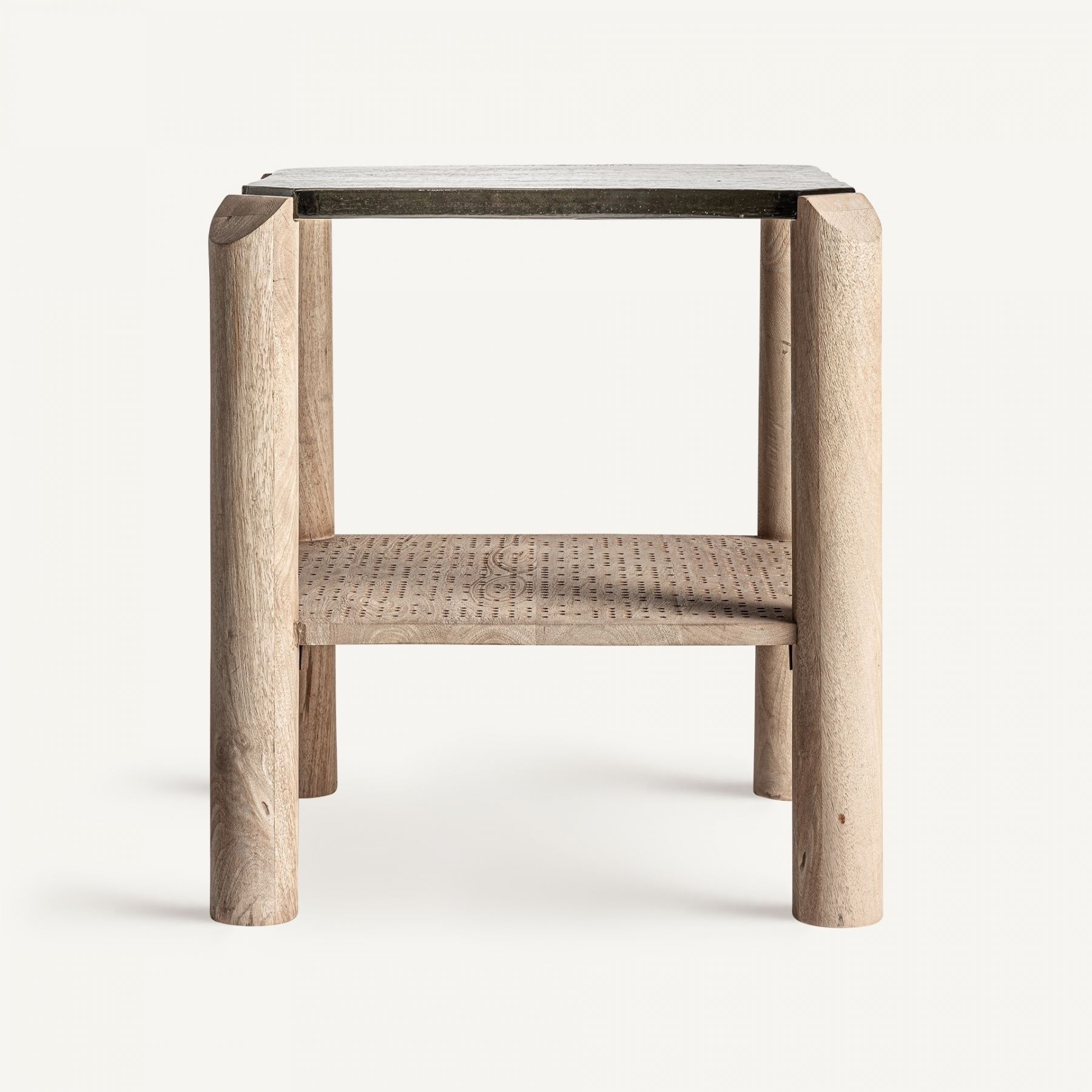 Жаккардовый журнальный столик в современном стиле. Изготовлен из мангового дерева светло-коричневого цвета в сочетании со стеклом прозрачного цвета. Изделие разборное.