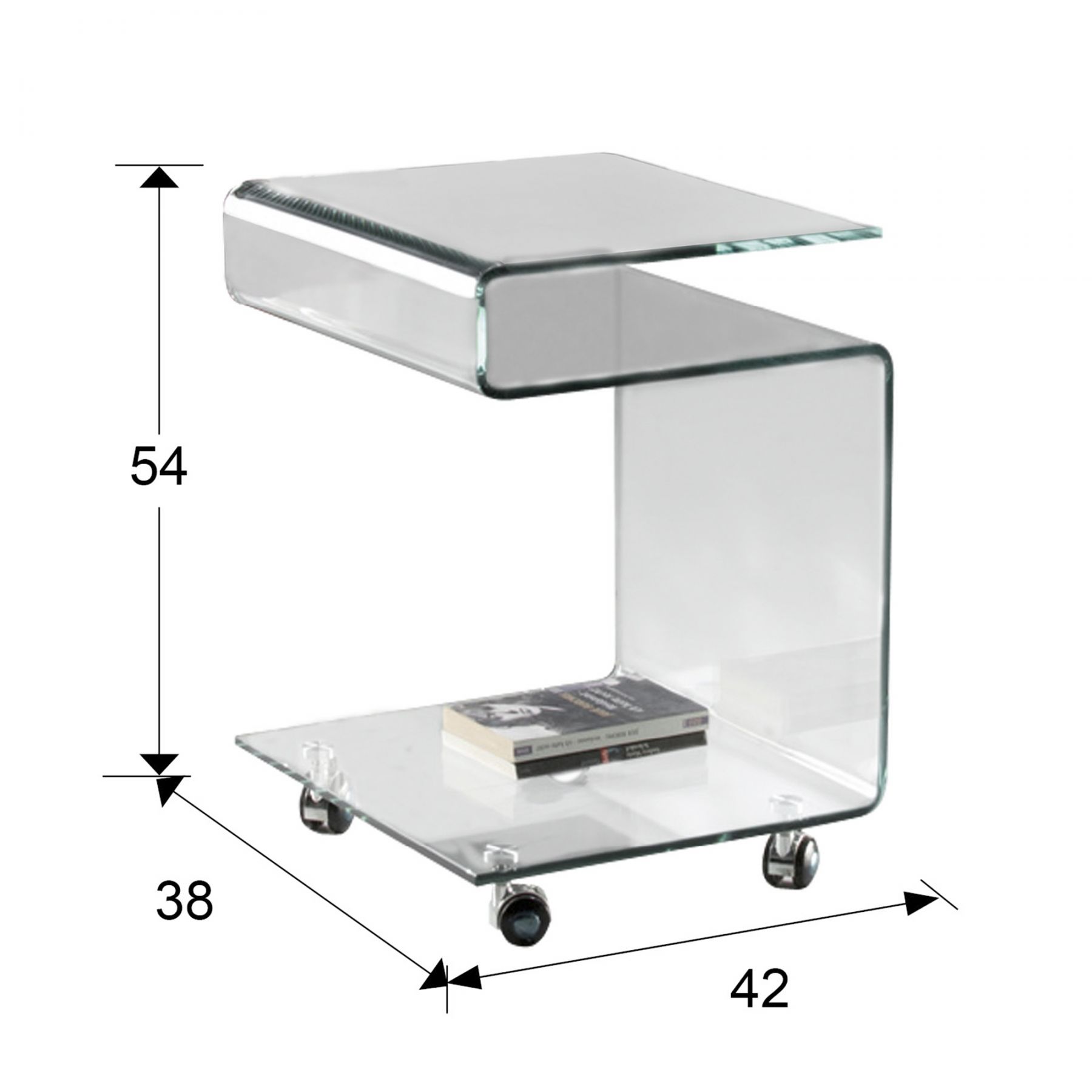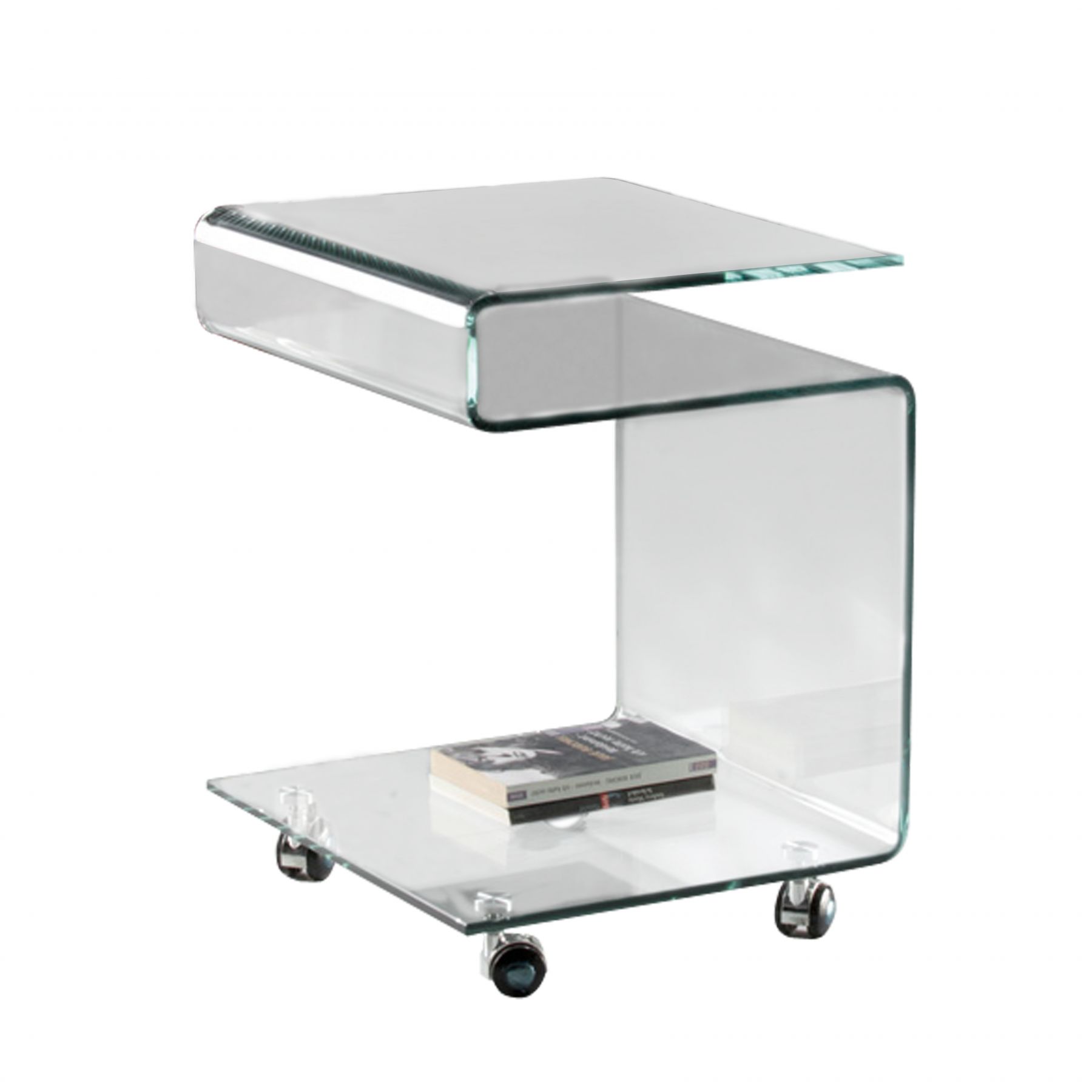 Журнальный столик на колесиках из гнутого стекла 10 мм, прозрачный.