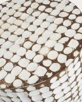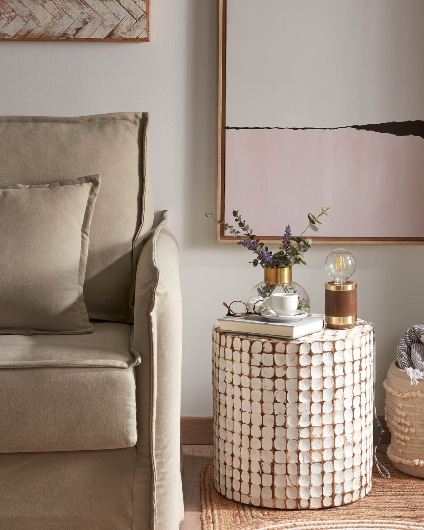 Столик приставной Coconut от фабрики La Forma – уникальная технология изготовления, запредельная стойкость к нагрузкам. Столик приставной Coconut безусловно выделяется своим самобытным дизайном. Слайсы из кокоса совершенно видоизменили деревянную фактуру и придали изделию уникальный внешний вид. Такая модель однозначно придаст колорита, добавит атмосферности стран Африки. Столик станет крайне полезной вещью, так как способен выдерживать колоссальные нагрузки. Столик цилиндрической формы, сделан из массива дерева манго. Поверхность полностью покрыта слайсами из кокоса, которые кроме декоративной функции несут еще и практическую. Так дерево защищено от негативного воздействия влаги и загрязнений. Для защиты напольного покрытия от повреждений, снизу имеются войлочные накладки. Максимально допустимая нагрузка на столик – 130 кг. Поэтому его можно использовать в качестве табурета, подставки. Размеры: ширина – 40 см, высота – 42 см. Вес – 6 кг. Сборка не требуется.