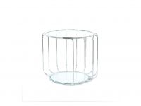Столик придиванный круглый, из глянцевой стали. Столешница и нижняя полка из закаленного стекла толщиной 6 мм.