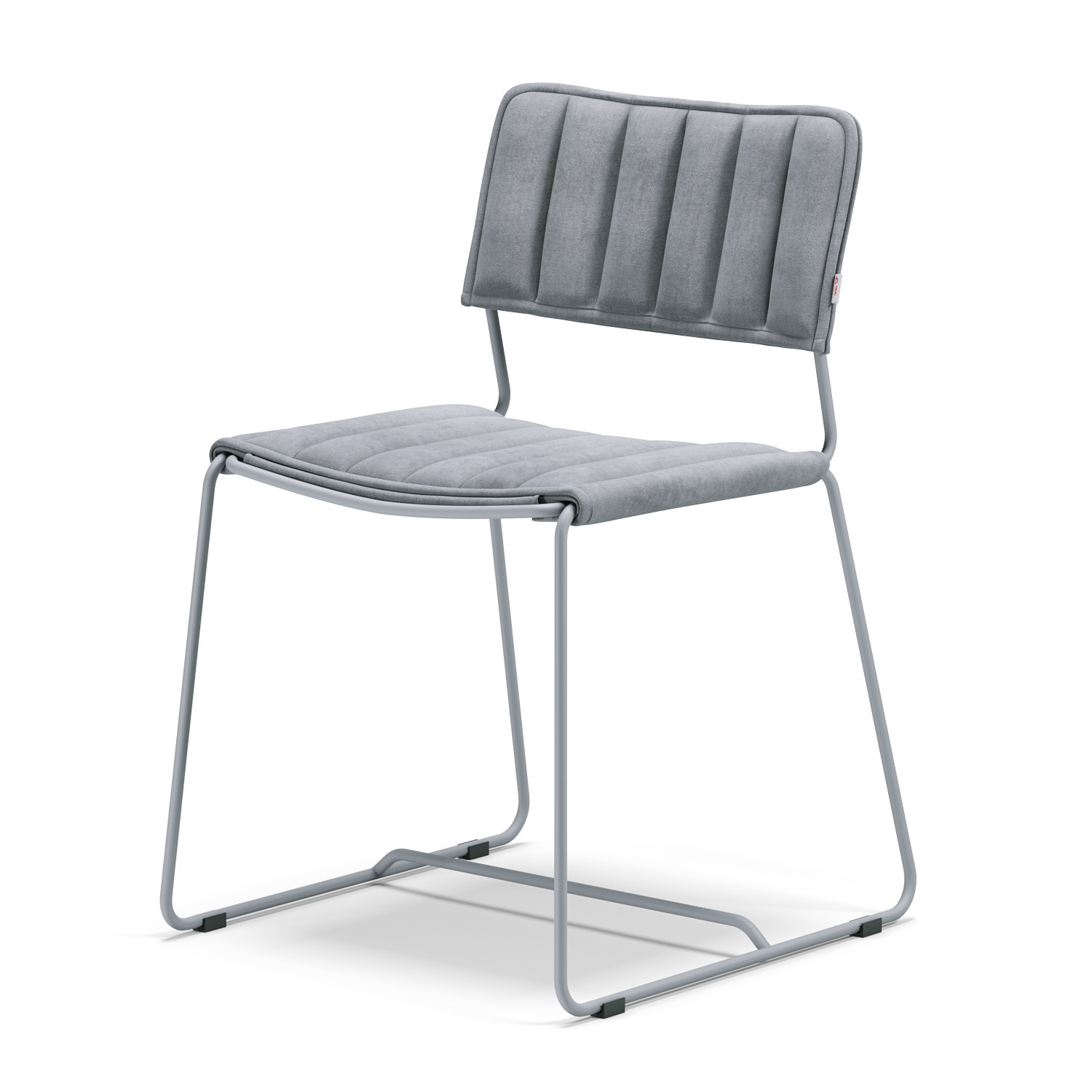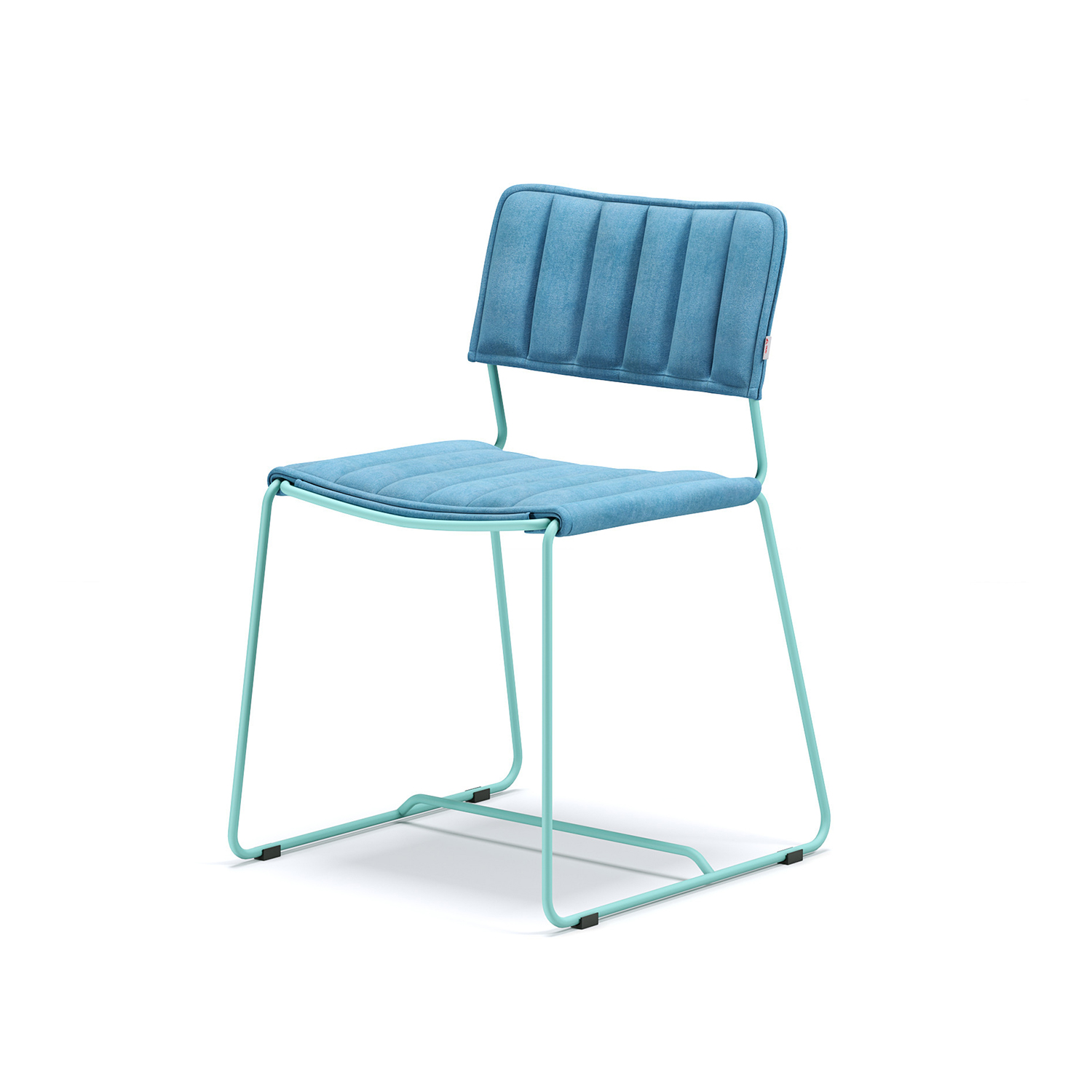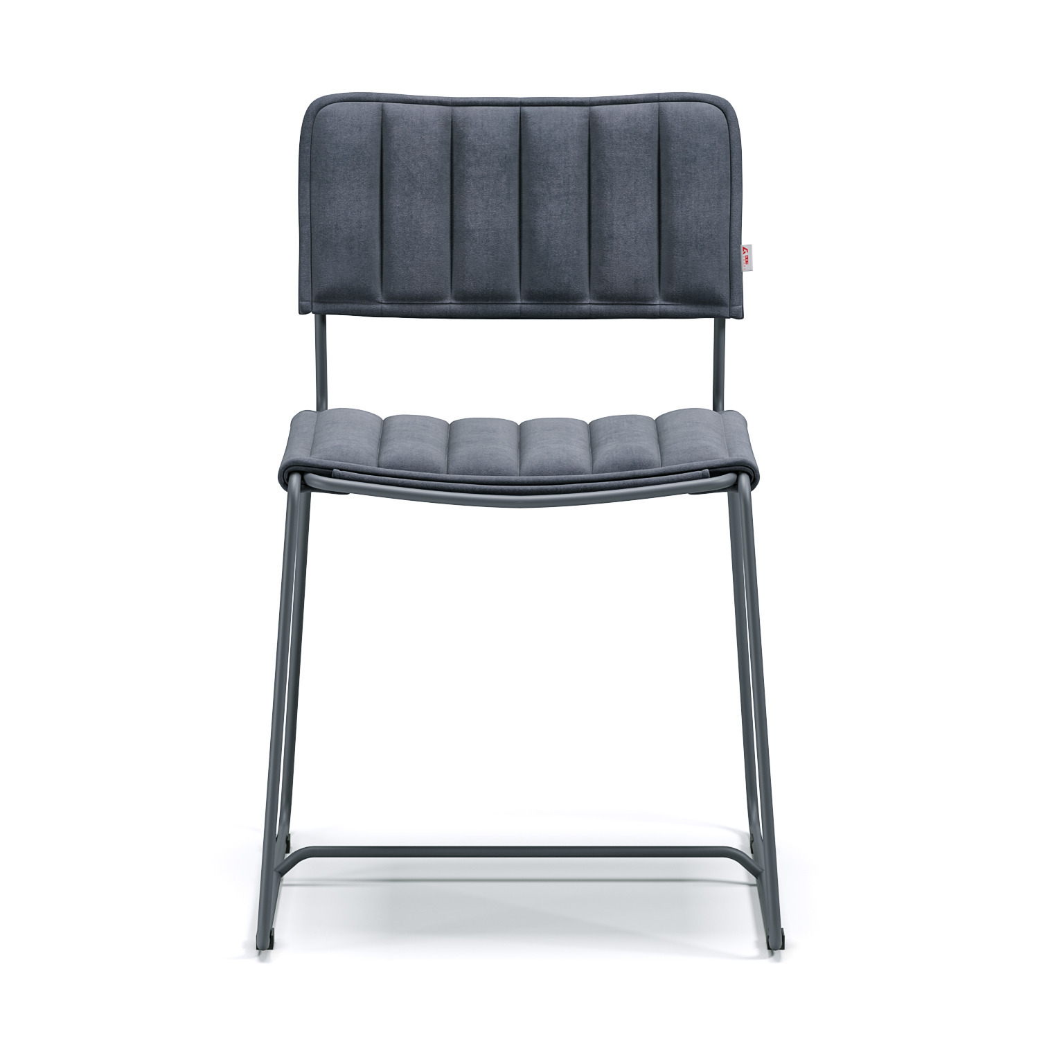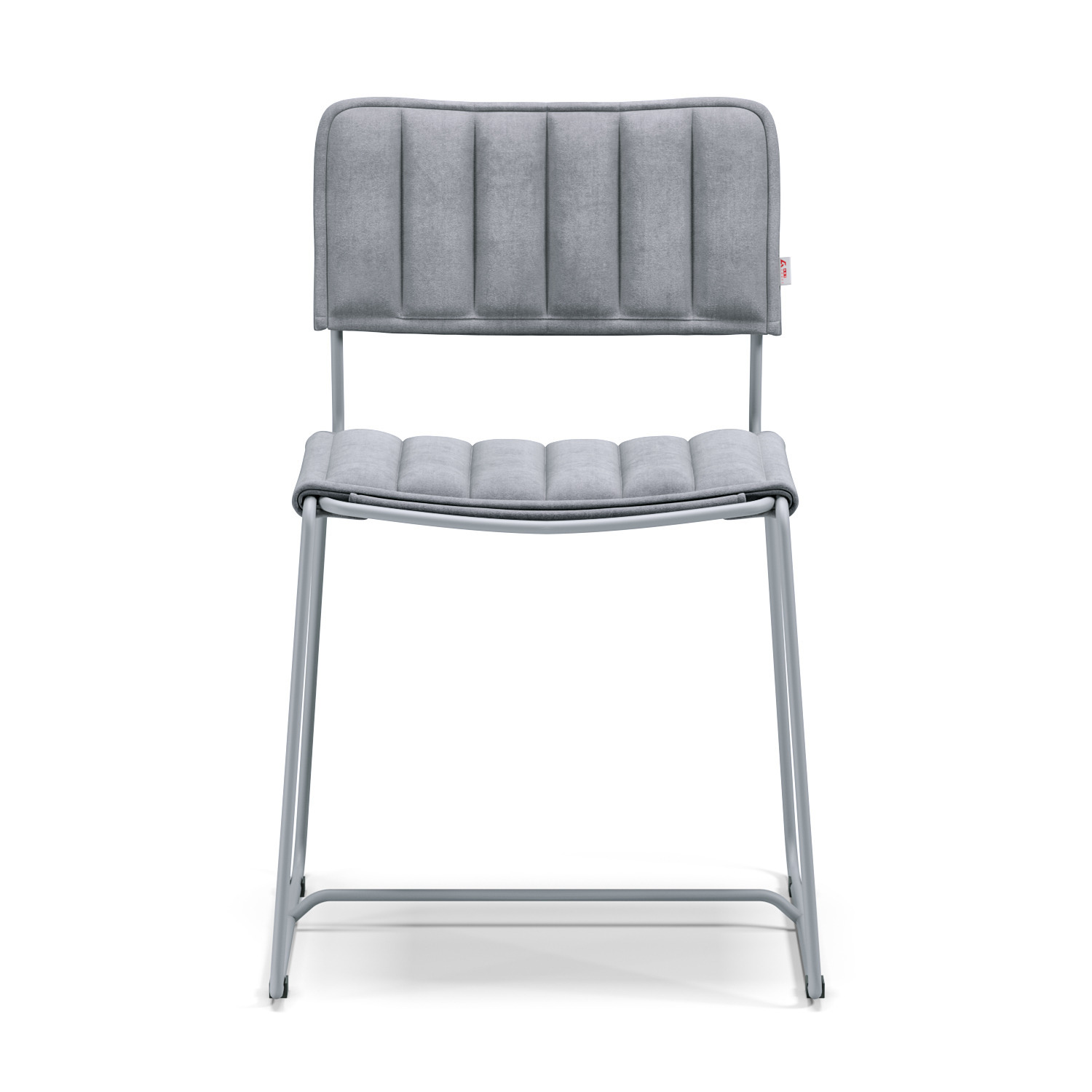 Стул на металлокаркасе. Долговечность ткани обеспечивается высокой плотностью 420 г/м.кв и стойкость к истиранию 80 000 циклов. Плотный ворс обеспечивает устойчивость ткани к проникновению влаги и загрязнения и лёгкость в уходе с помощью тряпочки из микрофибры. Варианты окраски основания: 3015 мат, 6027 мат, 7046 мат, 9003 мат, 7024 мат, бондированный хром или любой цвет из палитры RAL classic