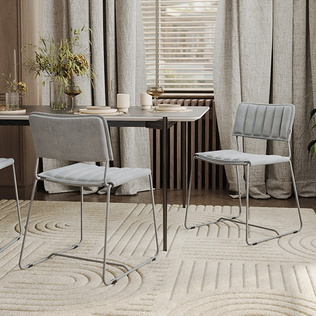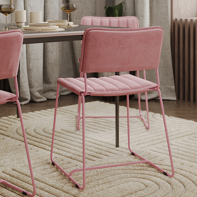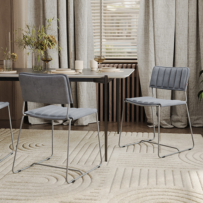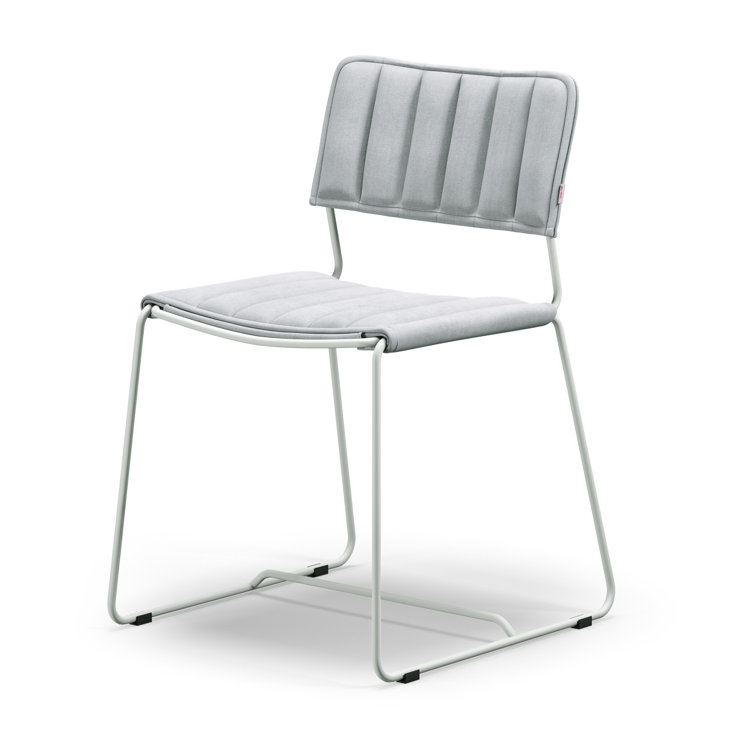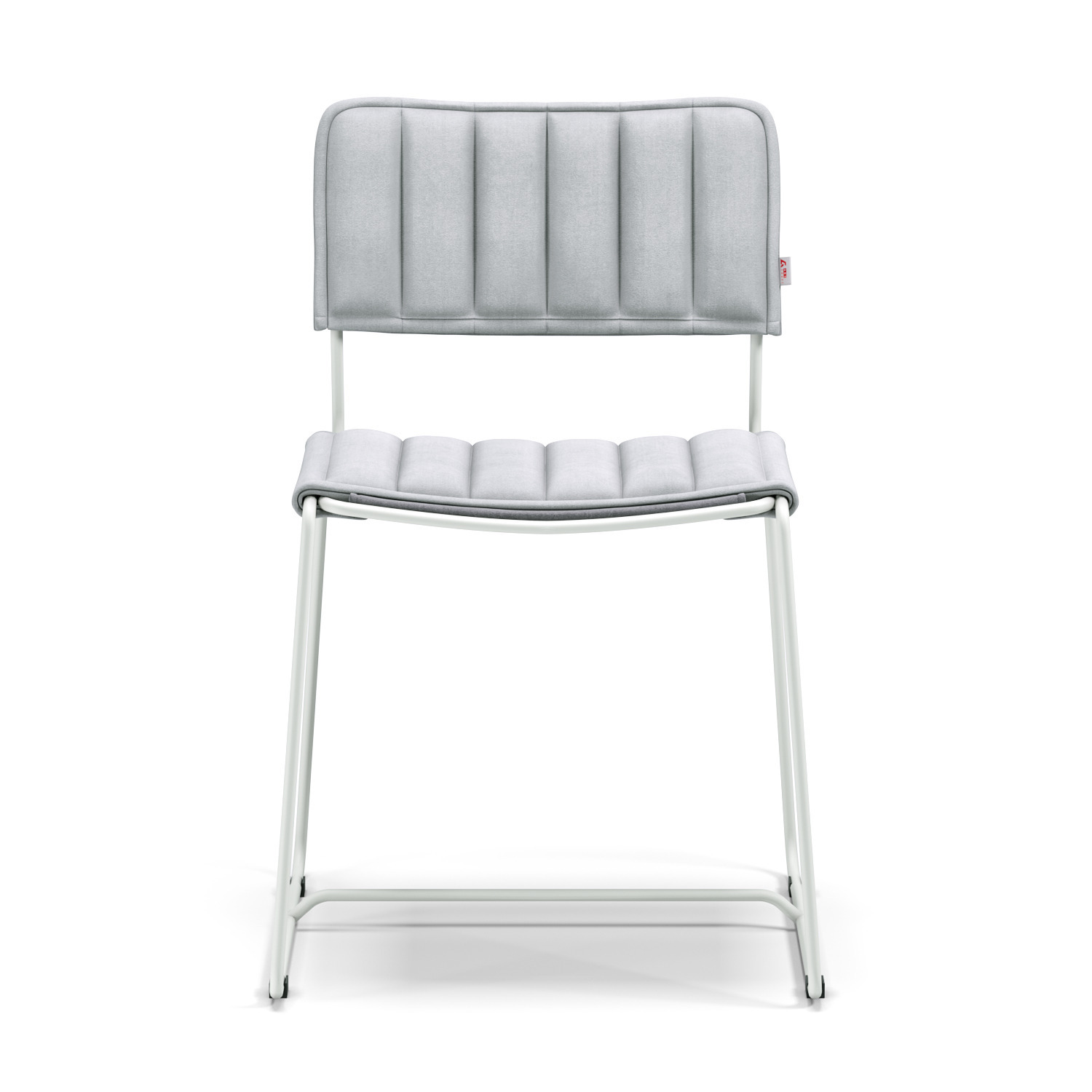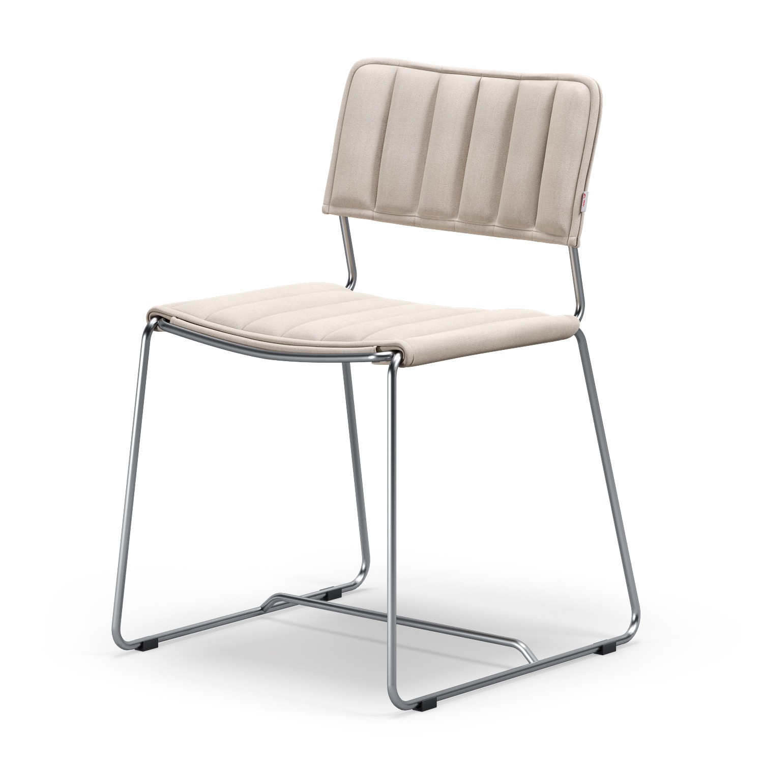 Стул на металлокаркасе. Долговечность ткани обеспечивается высокой плотностью 420 г/м.кв и стойкость к истиранию 80 000 циклов. Плотный ворс обеспечивает устойчивость ткани к проникновению влаги и загрязнения и лёгкость в уходе с помощью тряпочки из микрофибры. Варианты окраски основания: 3015 мат, 6027 мат, 7046 мат, 9003 мат, 7024 мат, бондированный хром или любой цвет из палитры RAL classic