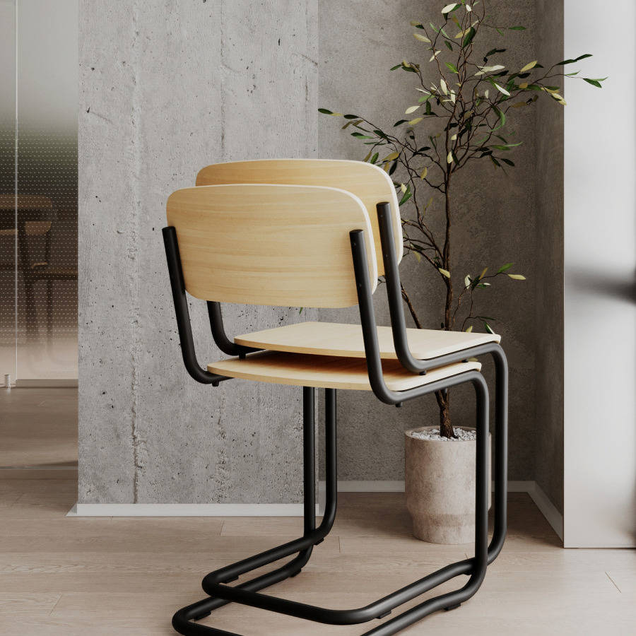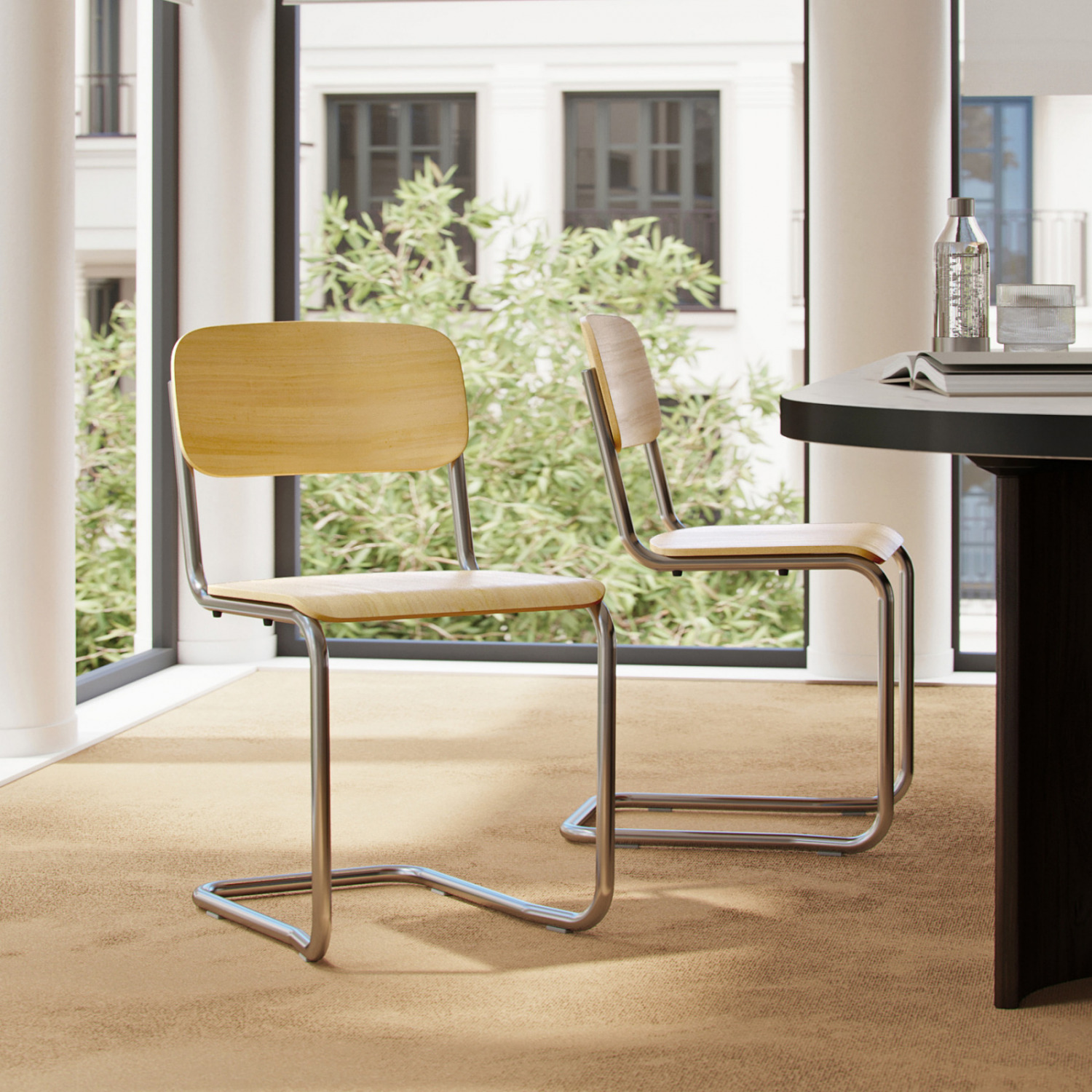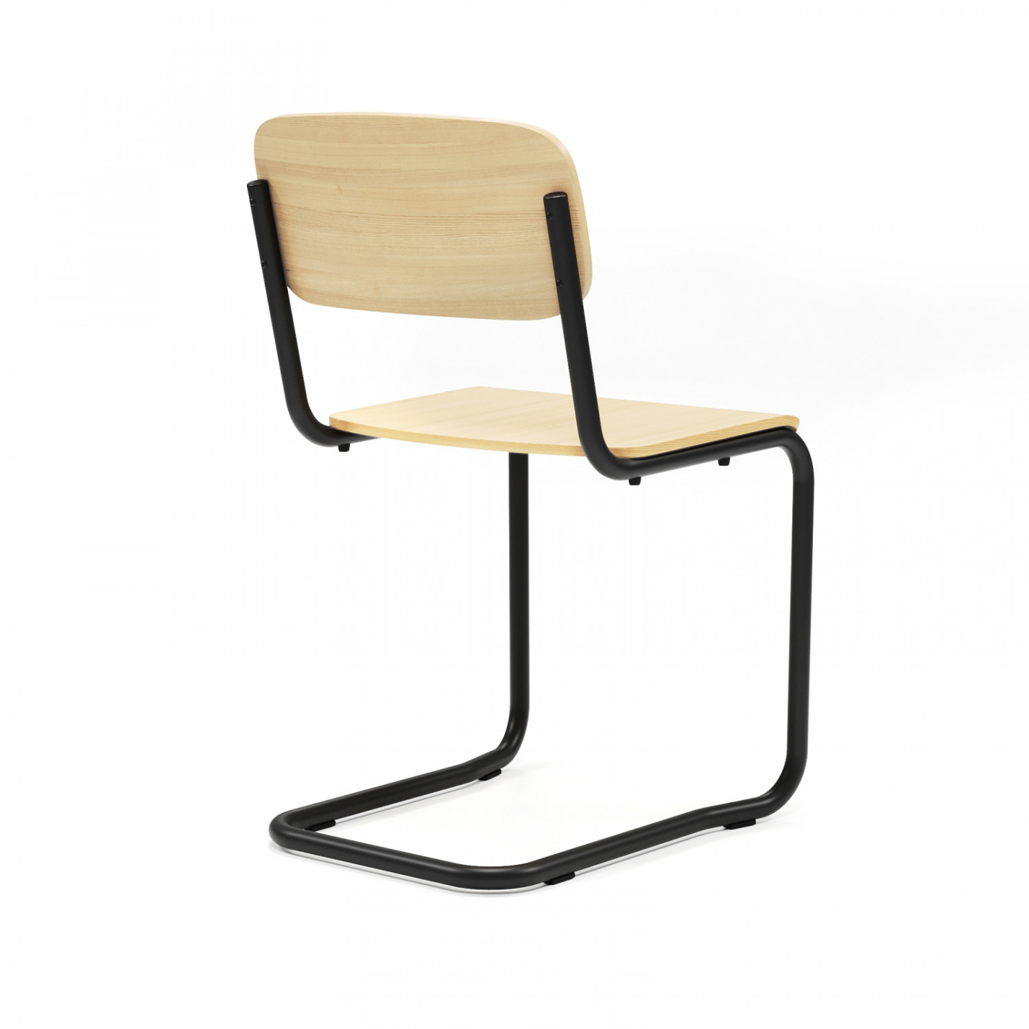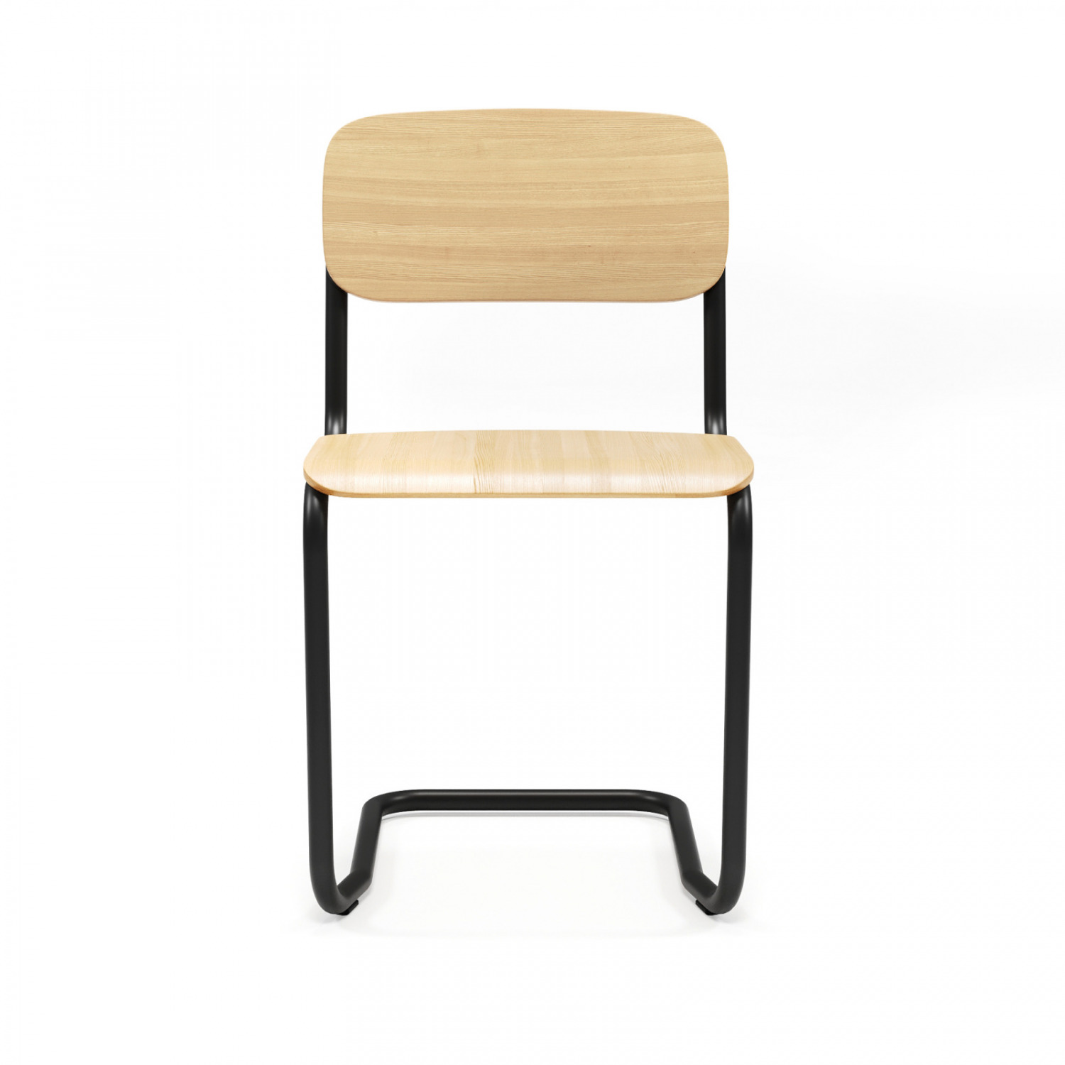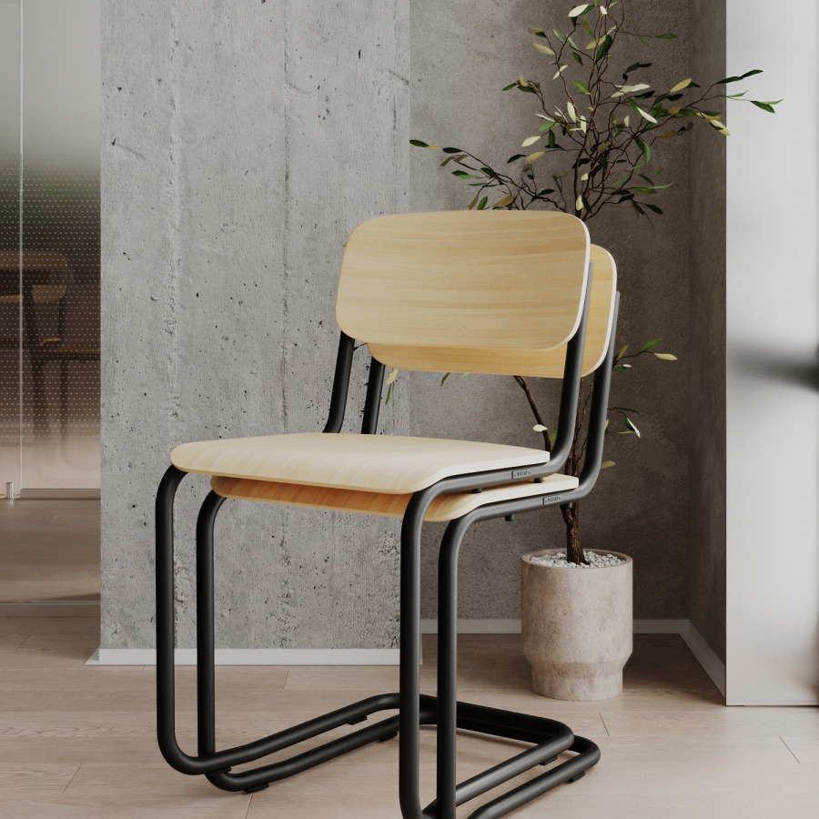 Конференц-кресло на хромированном металлокаркасе с деревянным сиденьем, покрытым шпоном натурального ясеня в цвете венге. Варианты окраски основания: гальванический хром и 9005 мат