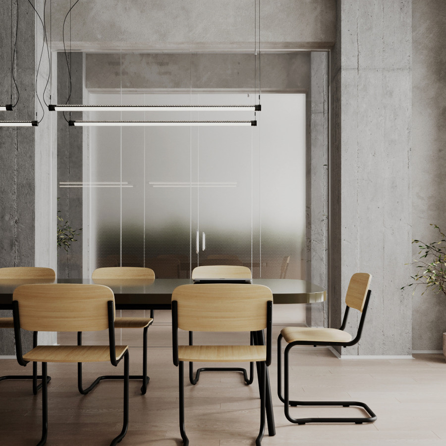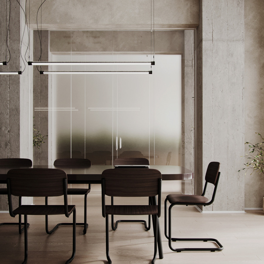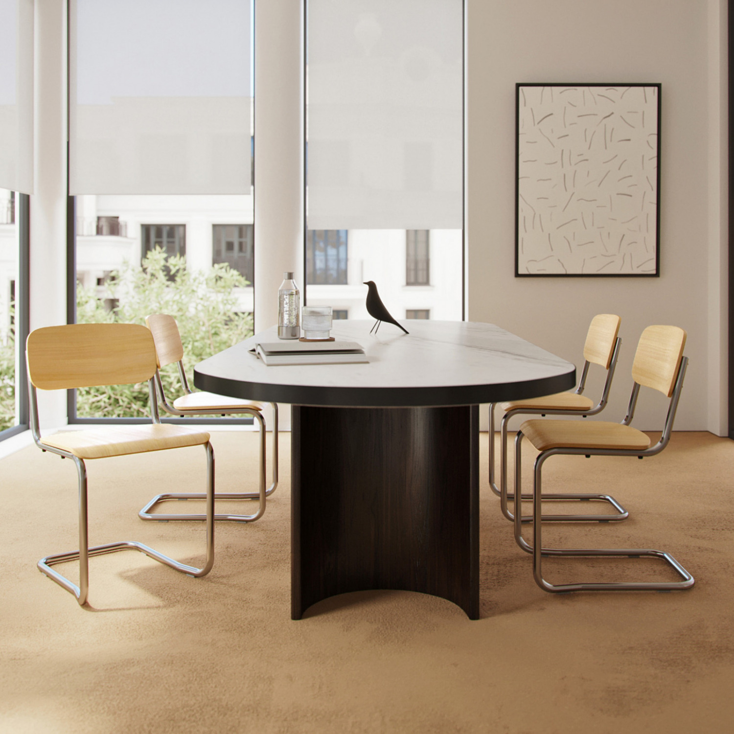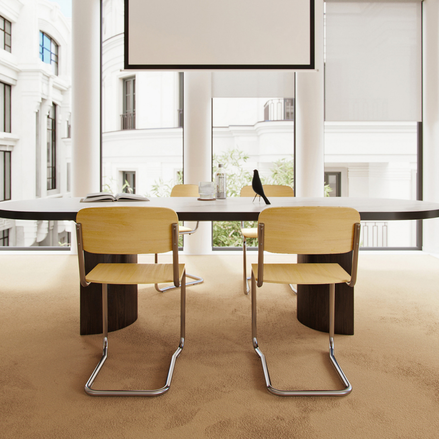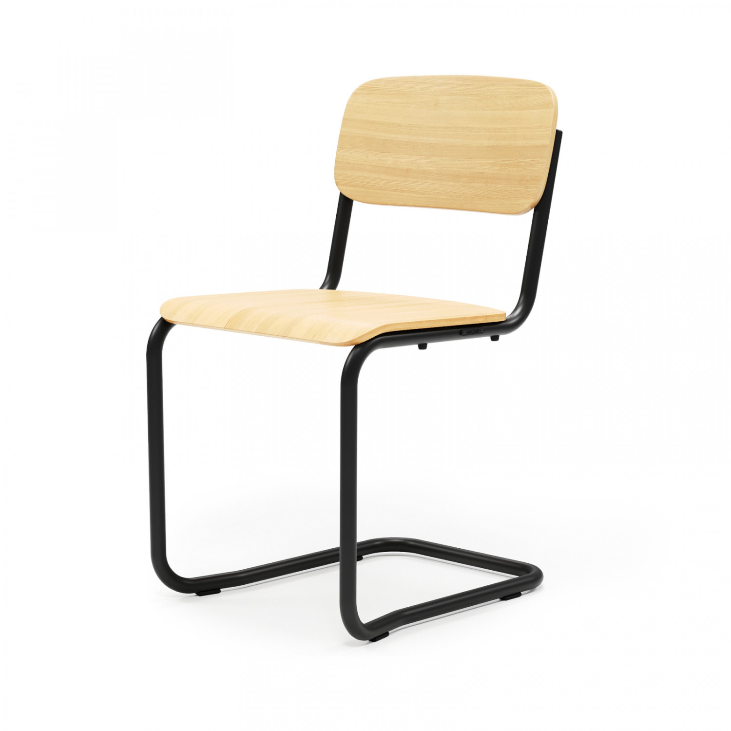 Конференц-кресло на хромированном металлокаркасе с деревянным сиденьем, покрытым шпоном натурального ясеня в цвете венге. Варианты окраски основания: гальванический хром и 9005 мат