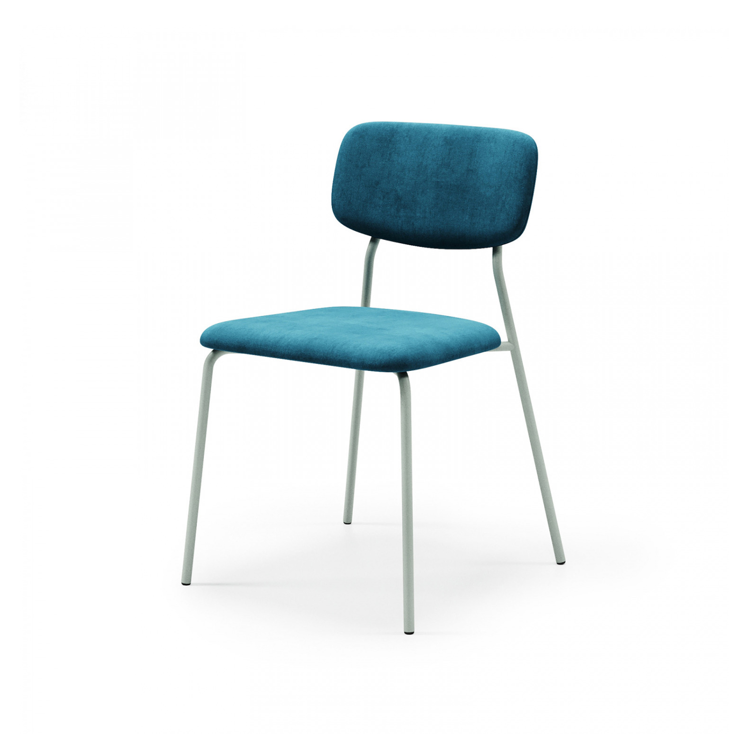 Металлический стул с сиденьем и спинкой из гнутой фанеры в мягкой обивке. По желанию заказчика доступна покраска основания в любой цвет по палитре RAL classic.