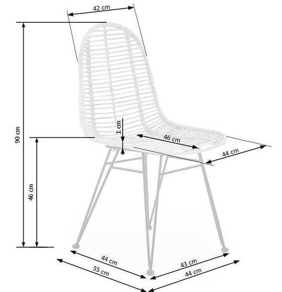 Вес, кг: 7 / Высота (см): 90 / Гарантия, мес.: 12 / Глубина (см): 55 / Глубина сиденья (см): 46 / Количество коробок: 2 / Материал каркаса: металл / Материал сидения: ротанг / Необходимость сборки: да / Размер упаковки 1: 0,51/0,49/0,46 / Размер упаковки 2: 0,48/0,48/0,48 / Страна производитель: Китай / Цвет: натуральный / Ширина (см): 44
