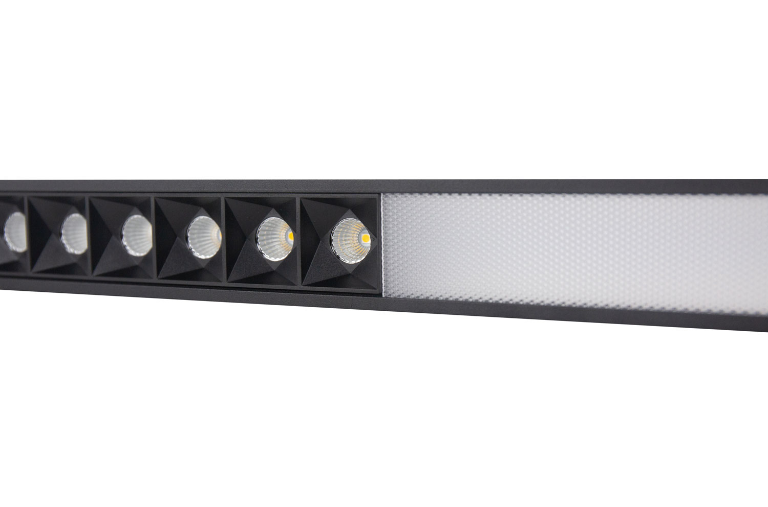 Направленный свет формируется с помощью линзованной оптики, создавая широкий и равномерный симметричный световой поток с высокой степенью ограничения бликов (UGR<19), что особенно важно для рабочих зон.