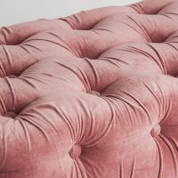 Табурет для ног на пуговицах TARDIANO, бледно-розового цвета, стиль шебби-шик. Изготовлен из древесины манго в сочетании с бархатом и поролоном.