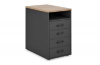 В коллекции Evolution модный цвет ЛДСП Дуб Честерфилд прекрасно гармонирует с Антрацитовым цветом металлических опор сечением 60х30 мм. Тумбы с элементами в цвете Дуб Честерфилд придают композиции особую свежесть и динамизм, заряжая сотрудников энергией и позитивом. Приставные шкафы-купе, выполненные вровень с бенч-системой, расширяют рабочее пространство и служат для хранения документов. Фронтальные и торцевые тканевые экраны отделяют рабочие места, позволяя сосредоточится на важных задачах. О-образные опоры, обладая повышенной жесткостью конструкции и дизайнерским шиком придают мебели особый вид, наполняя офис энергией успеха. Шкафы-купе высотой 101 см выполняют функции перегородок, отделяя рабочие места сотрудников от остального пространства офиса и систем хранения, использование которых обеспечивает легкий доступ к необходимой документации. В современном офисе большую роль играет мягкая зона, которая в зависимости от задач может служить и местом отдыха и зоной неформальных коммуникаций между сотрудниками и пространством для переговоров. Стильные журнальные столики настраивают на комфортную, позитивную беседу.